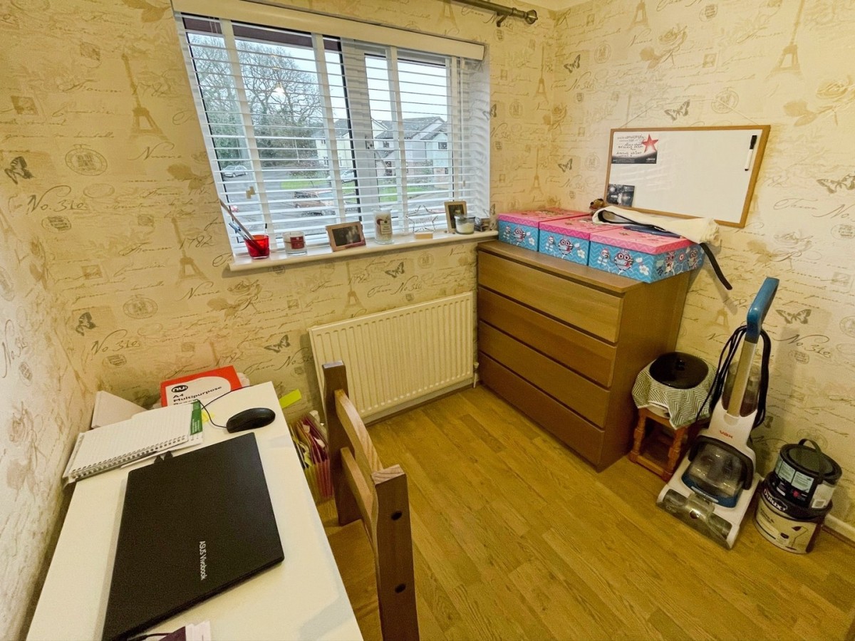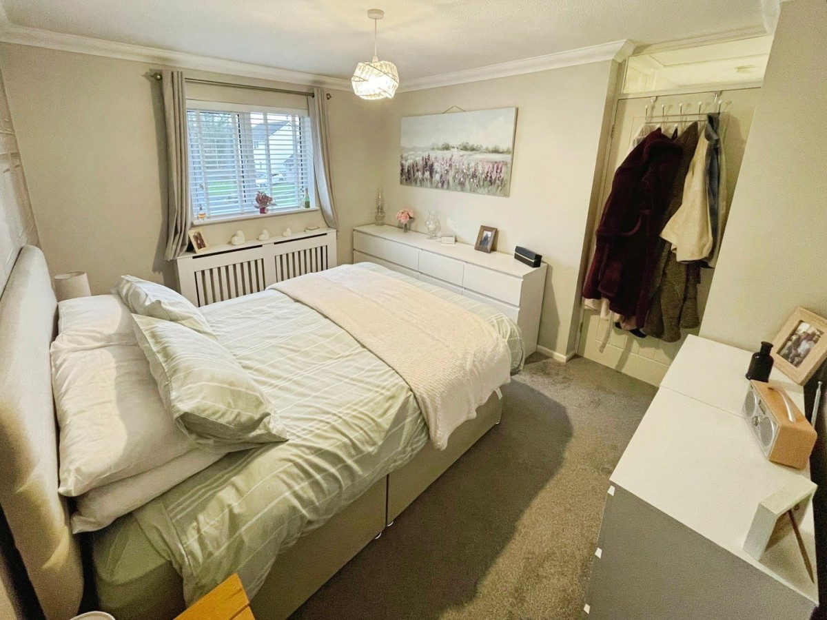 2.98m x 3.15m (9' 9" x 10' 4") Textured and coved ceiling with centre light, plastered and emulsioned walls with one feature papered wall, skirting and fitted carpet. PVCu double glazed window overlooking the rear and radiator.