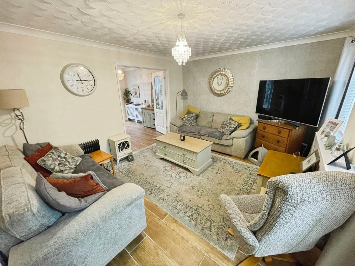 Off road parking to the front for approximately 4/5 vehicles leading to the garage accessed via an up and over door with power and lighting. Pathway leading to the front door and areas laid to lawn and decorative stone with space for a Bistro set.