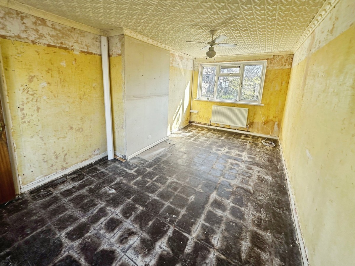 3.2m x 5.5m (10' 6" x 18' 1") Benefiting from dual aspect natural light via PVCu double glazed window to the front and to the rear and finished with a tiled and coved ceiling, central light fitting and fan, plastered walls, skirting and vinyl tiled floor.