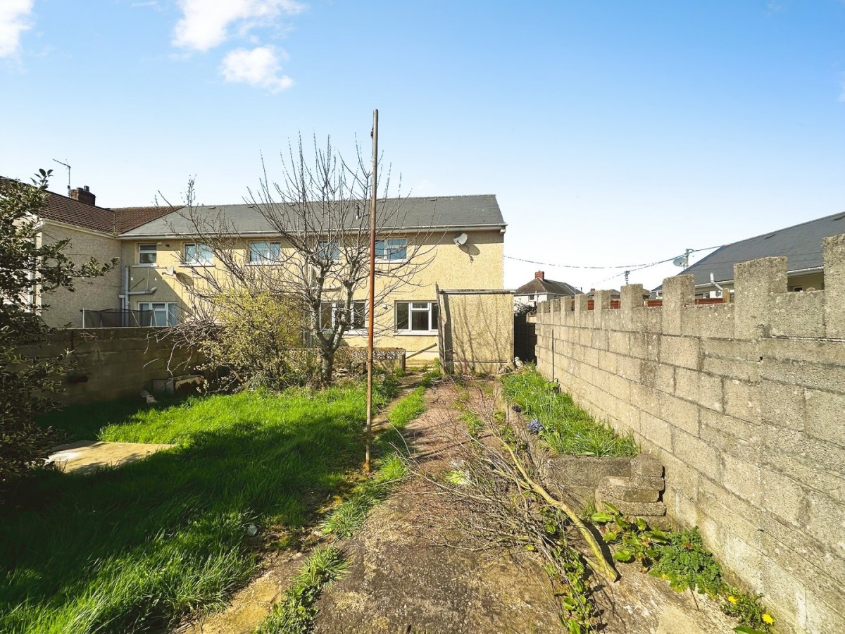 Enclosed rear garden laid to patio and lawn with mature trees and a raised bed. Side access back to the front where there is an enclosed front garden with off-road parking.