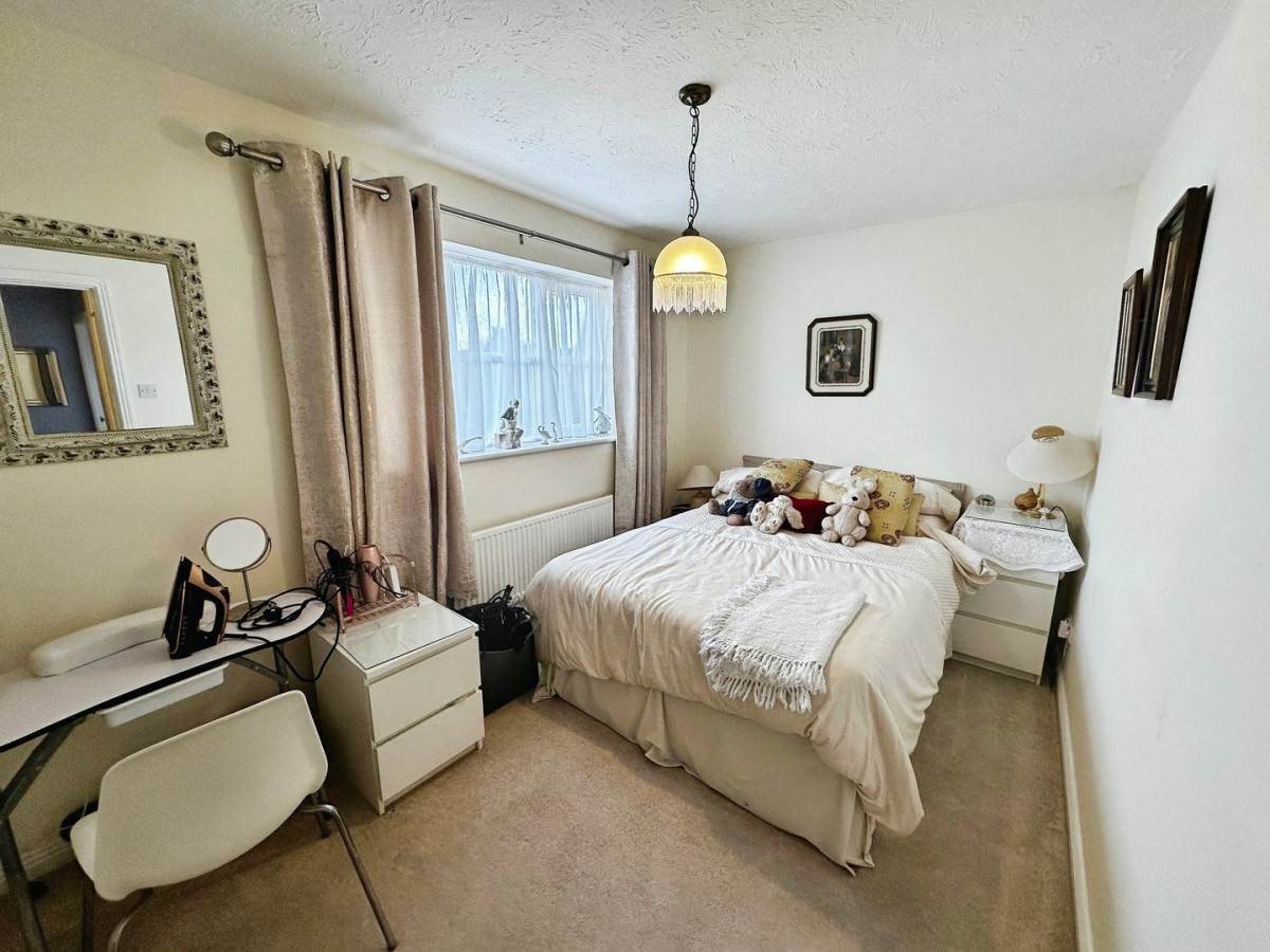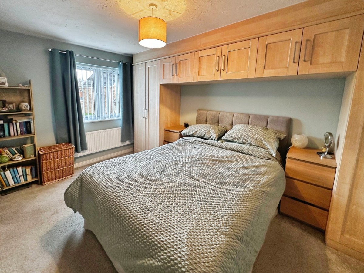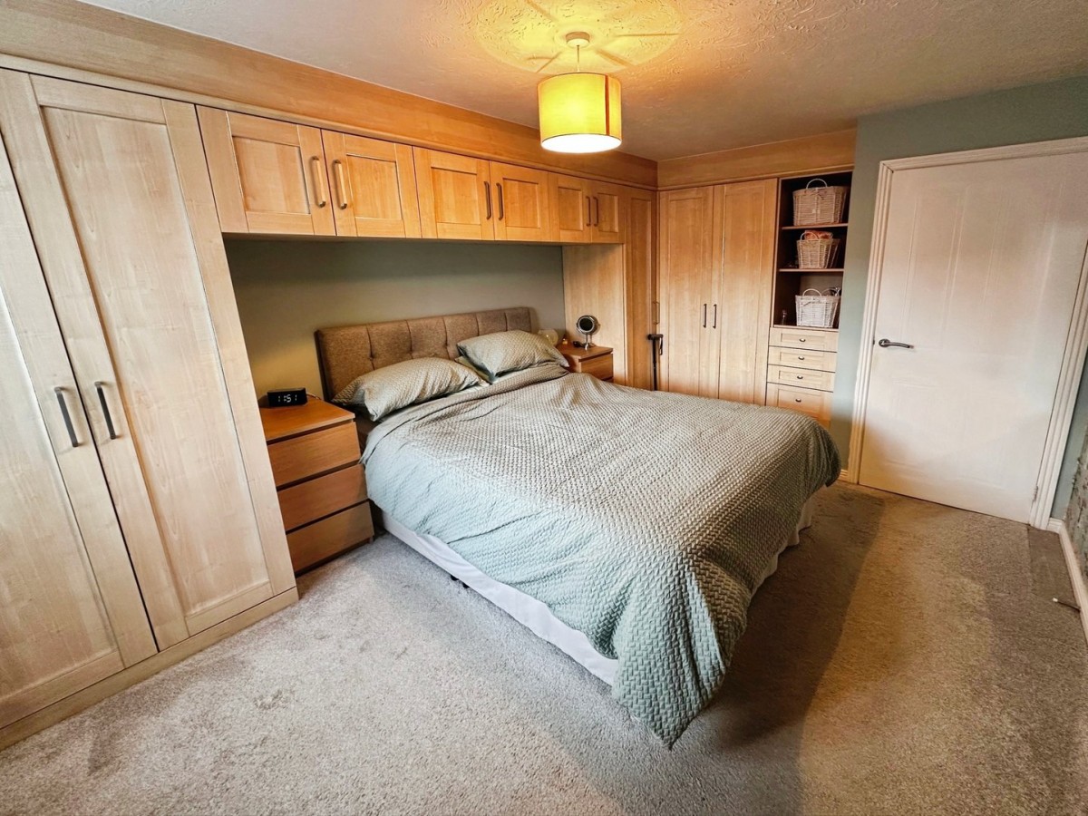 4.5m x 3m (14' 9" x 9' 10") Overlooking the front via PVCu double glazed window with a fitted vertical blind finished with emulsioned walls and one feature paper wall, skirting, fitted carpet. Fitted wardrobes with over bed storage, chest of drawers and shelving plus bedside tables.