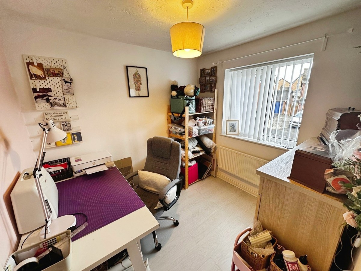 2.6m x 2.65m (8' 6" x 8' 8") Overlooking the front via PVCu double glazed window with a fitted vertical blind finished with emulsioned walls, skirting and a laminate floor.