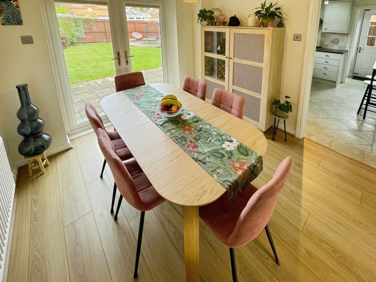 2.72m x 2.91m (8' 11" x 9' 7") Textured and coved ceiling with centre pendant light, plastered and emulsioned walls, skirting, continuation of the laminate flooring. Space for good size extending dining table and chairs, PVCu double glazed French doors leading out to the rear garden and radiator. Door leading into the kitchen.