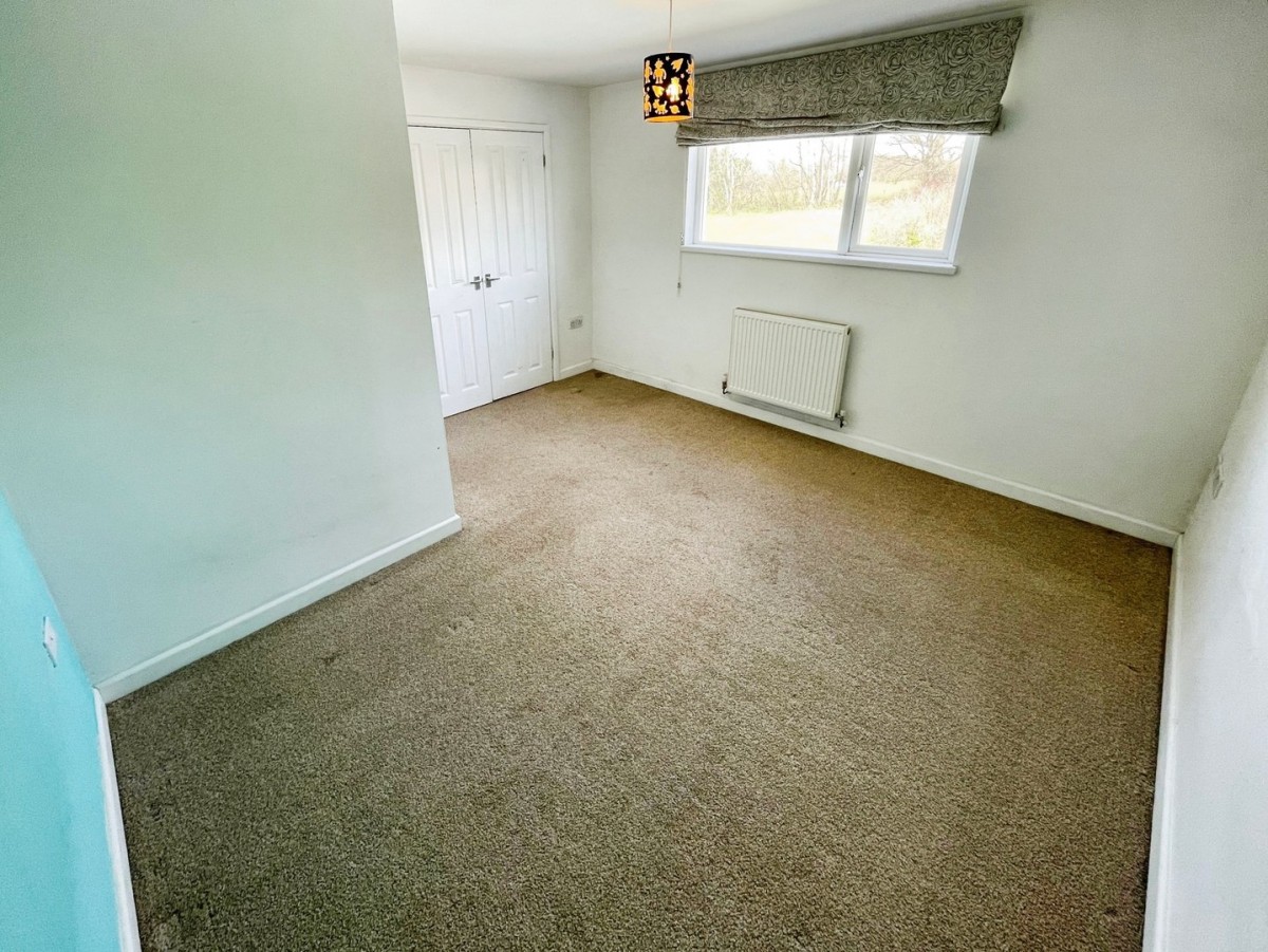 Measurements are to the wardrobes. Plastered and emulsioned ceiling with pendant light, plastered and emulsioned walls, skirting and fitted carpet and PVCu double glazed window to the rear of the property. Large double built in storage cupboard with hanging rails and shelving.