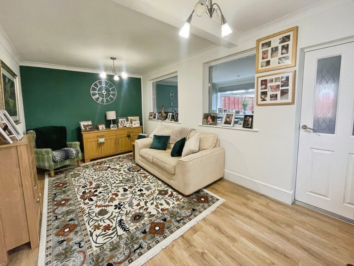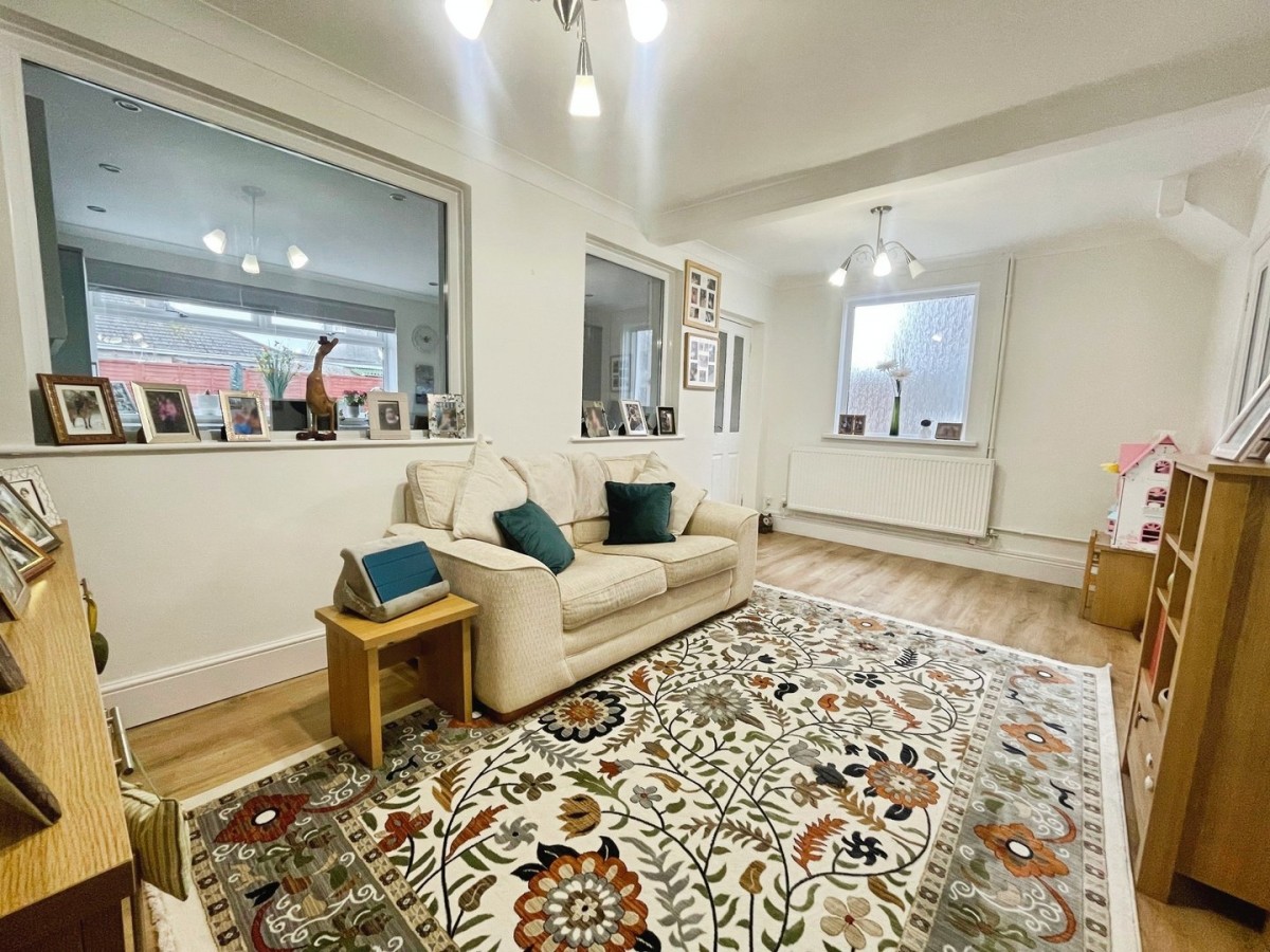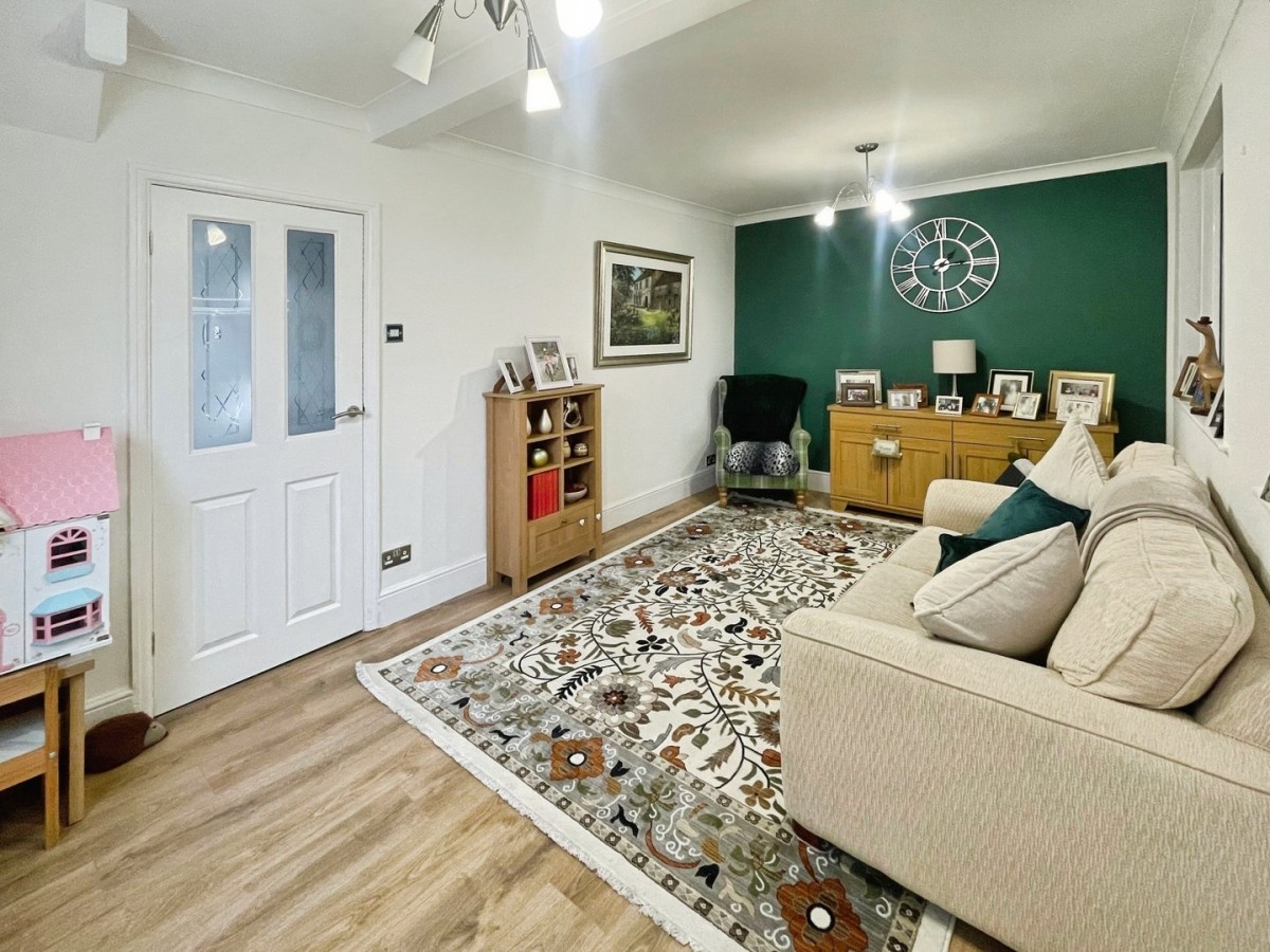 5.20m x 3m (17' 1" x 9' 10") Emulsioned and coved ceiling with two light fittings to remain. emulsioned walls, PVCu double glazed window overlooking the kitchen and frosted PVCu window to the side of the property. Radiator, laminate flooring and glazed door leading into the kitchen.