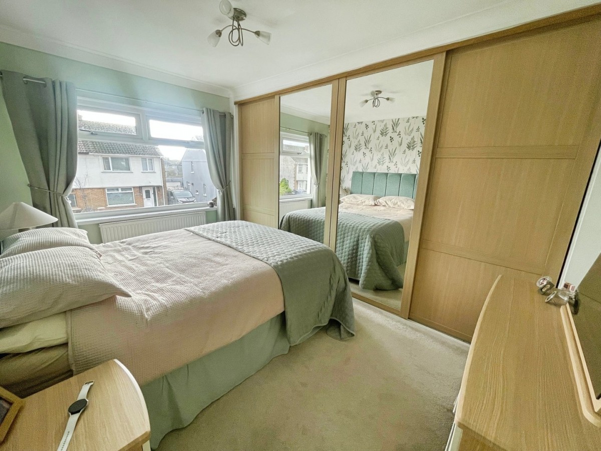 2.50m x 3.90m (8' 2" x 12' 10") Measurements are to the wradrobes. Emulsioned and coved ceiling with light fitting to remain, emulsioned walls with one feature papered wall, fitted carpet and radiator. Wooden and mirrored sliding doors to remain. PVCu double glazed window to the front of the property.