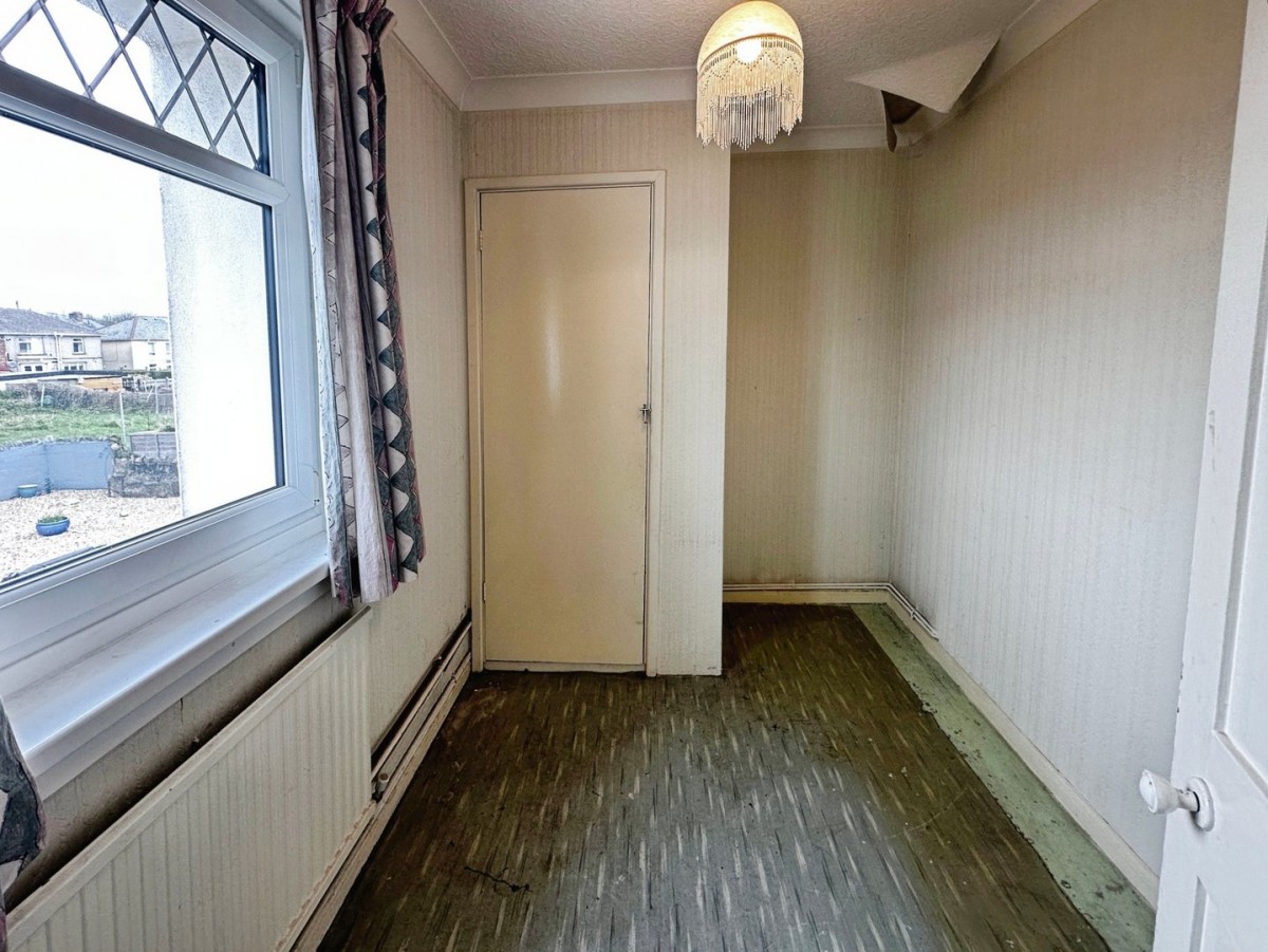 3.55m x 3m (11' 8" x 9' 10") Dual aspect natural light via PVCu frosted glazed window with a fitted roller blind to the side and a PVCu double glazed window with a fitted roller blind to the rear. Two sets of spotlights, papered walls, vinyl floor.