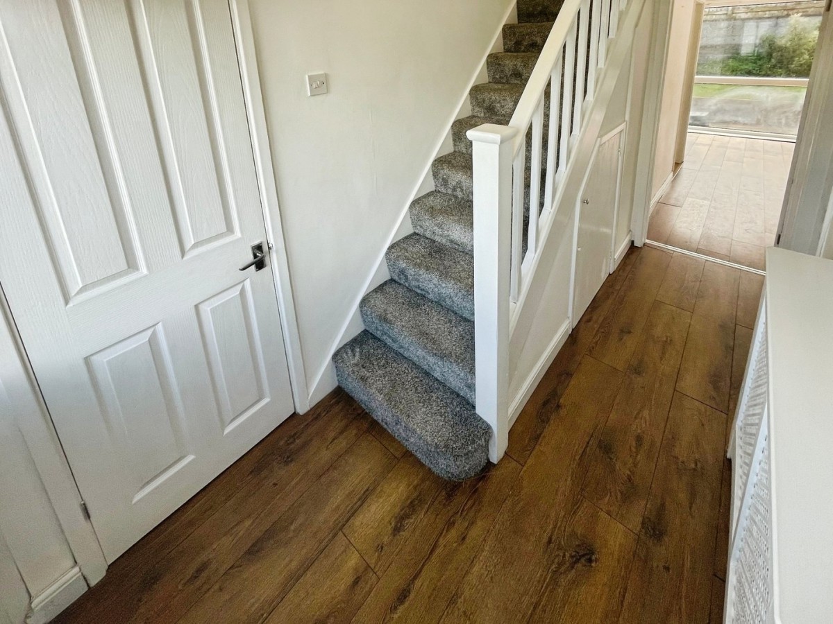 Artexed ceiling, emulsioned walls, laminate flooring, PVCu window to the rear of the property and PVCu glazed door. Door leading into the kitchen/diner.