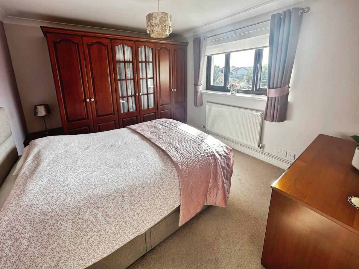3.20m x 3.80m (10' 6" x 12' 6") Overlooking the rear via PVCu double glazed window with a fitted roller blind and finished with a coved ceiling, central ceiling rose, emulsioned walls, skirting and fitted carpet. Triple fitted wardrobe with matching bedroom furniture.
