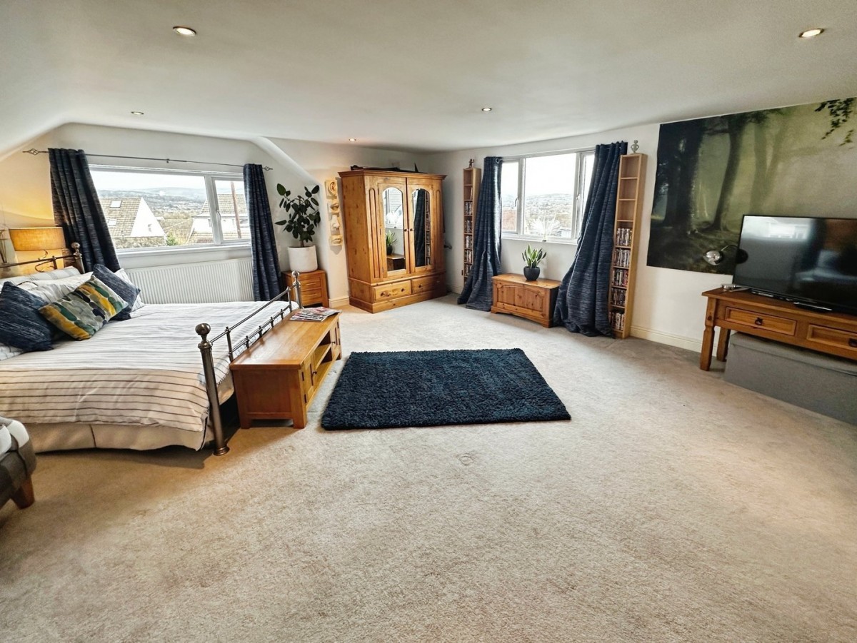5.15m x 6.00m (16' 11" x 19' 8") Dual aspect natural light via PVCu double glazed windows to the rear and to the side. Recessed LED spot lights, skirting and fitted carpet.