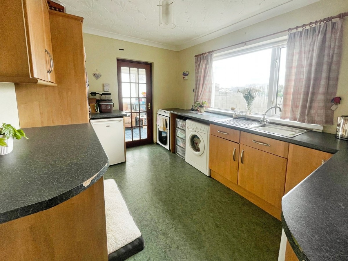 2.7m x 3.6m (8' 10" x 11' 10") Artexed and coved ceiling, emulsioned walls, PVCu window overlooking the rear of the property, radiator, glazed door leading to side lean to conservatory and vinyl flooring. A range of wall and base units with complementary work surface. Stainless steel sink and drainer with stainless steel mixer tap. Space for freestanding fridge and freezer. Space for washing machine and oven.