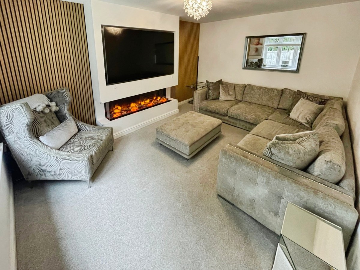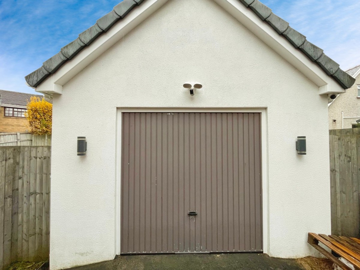 The front of the property is laid to lawn with path leading to the front door, outside lighting and driveway parking for four vehicles with car charging point to remain. Garage accessed via a traditional up and over door with power and lighting. Side gate leading to the rear garden.