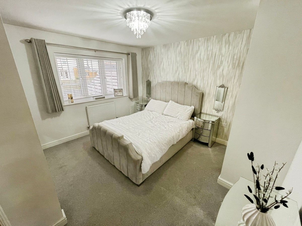 3.39m x 3.73m (11' 1" x 12' 3") Plastered and emulsioned ceiling with centre light, plastered and emulsioned walls with one feature papered wall, skirting and fitted carpet. Good sized PVCu double glazed window overlooking the rear of the property and radiator. Door leading to the en suite.