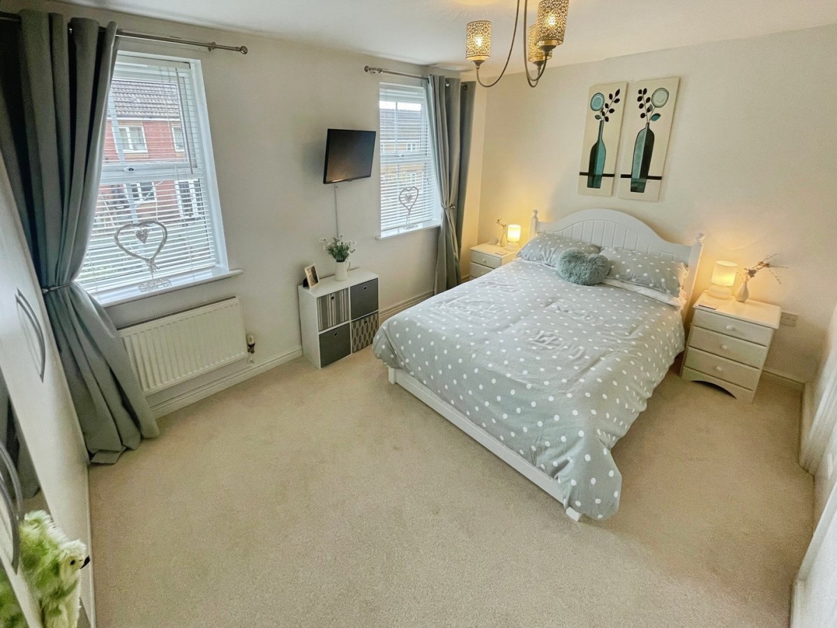 3.03m x 4.31m (9' 11" x 14' 2") measurements are to the wardrobes. Plastered and emulsioned ceiling with pendant light, plastered and emulsioned walls, skirting and fitted carpet. Two double built in wardrobes, two PVCu double glazed windows overlooking the rear of the property and radiator.