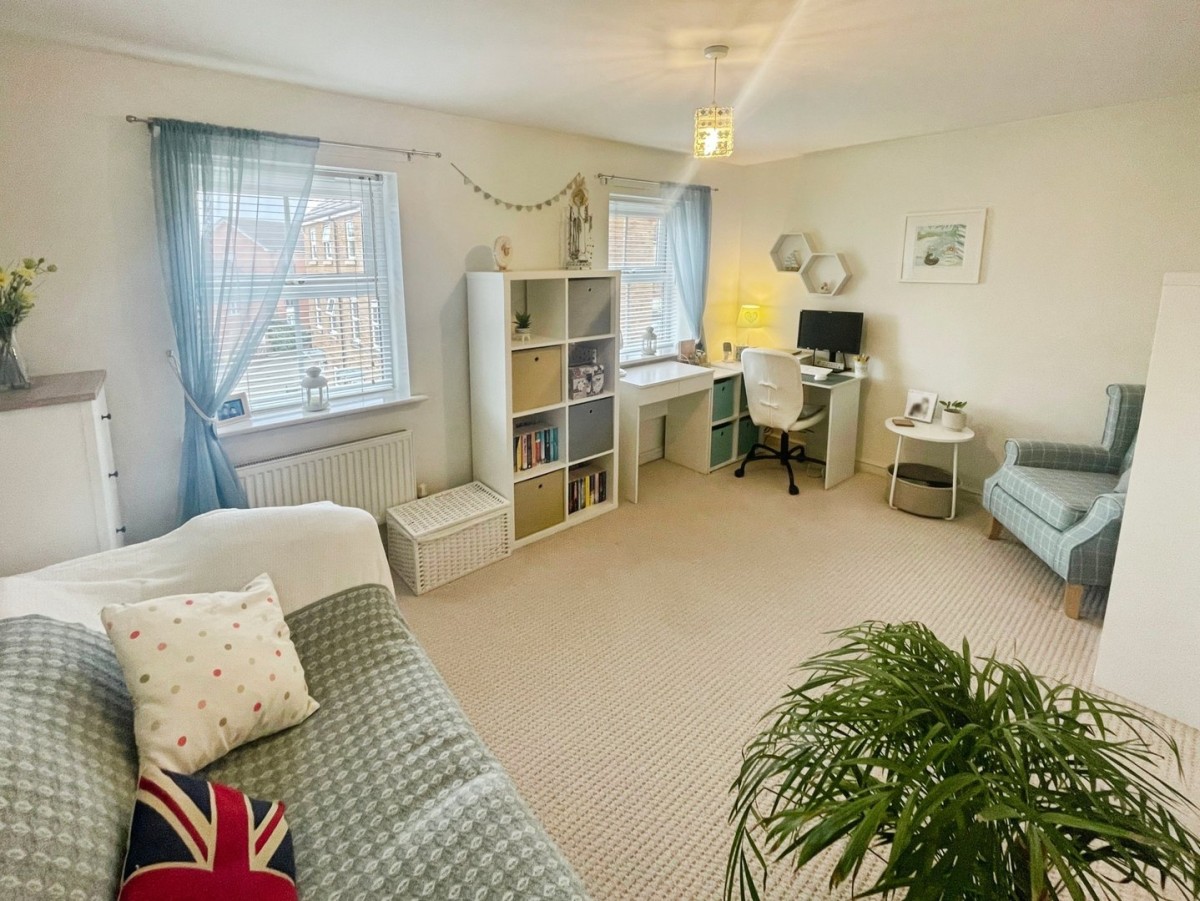 2.94m x 4.33m (9' 8" x 14' 2") Plastered and emulsioned ceiling with pendant light, plastered and emulsioned walls, skirting and fitted carpet. Two PVCu double glazed windows overlooking the front of the property and wall mounted radiator.