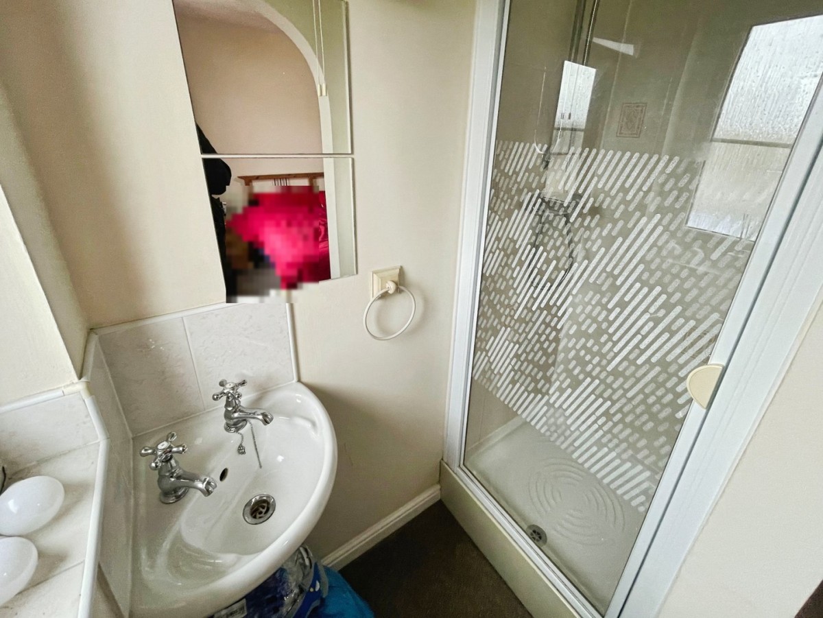 0.75m x 1.61m (2' 6" x 5' 3") Textured ceiling, centre light, extractor fan and frosted PVCu double glazed window overlooking the rear. Two piece suite comprising wall hung ceramic sink with chrome taps and shower cubicle with overhead chrome shower mixer and glass door.
