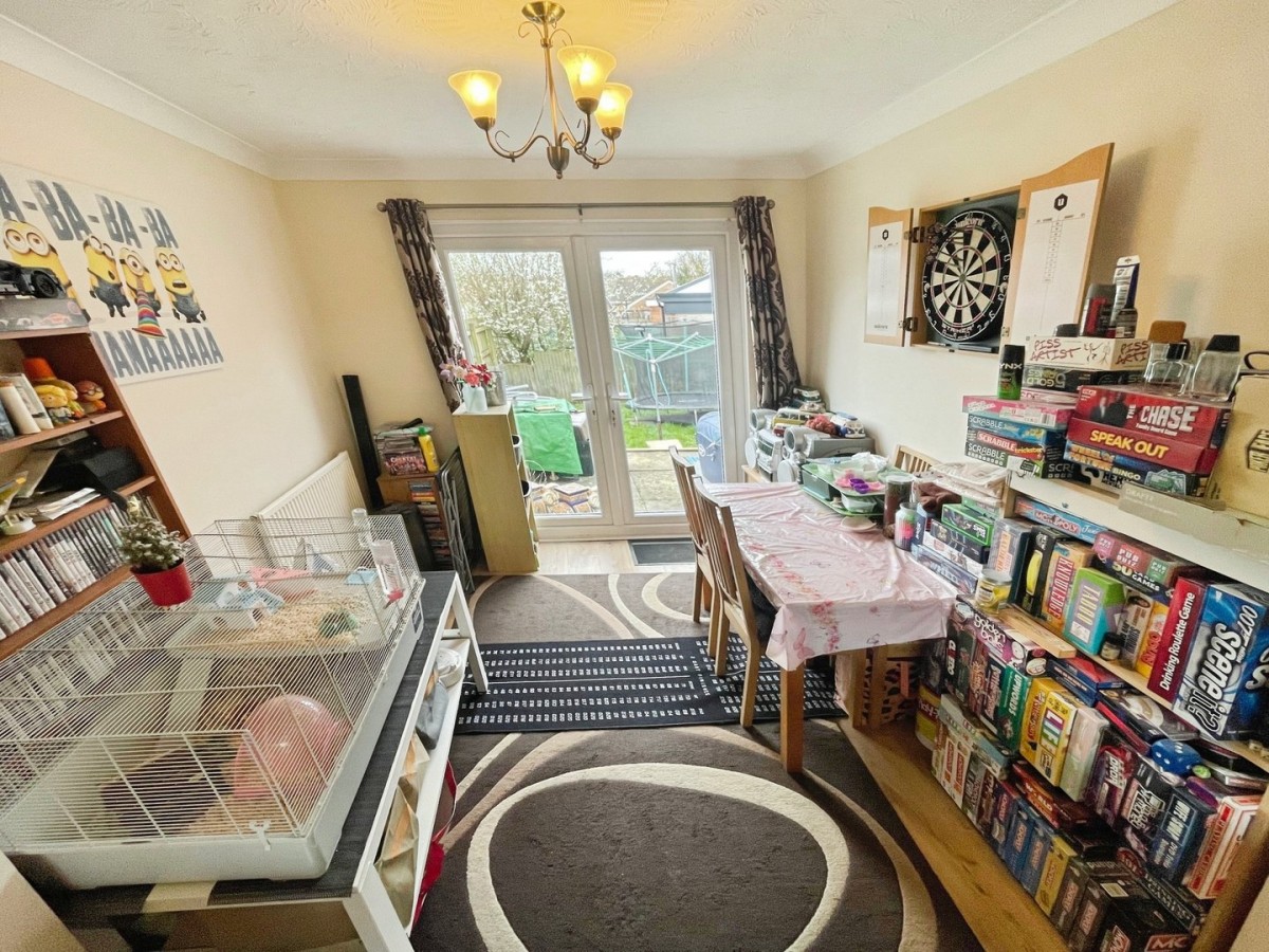 2.76m x 2.81m (9' 1" x 9' 3") Textured and coved ceiling, centre light, emulsioned walls, PVCu double glazed French doors leading out to the rear garden, radiator, skirting and a continuation of the wood effect laminate flooring. Space for dining room table and chairs.
