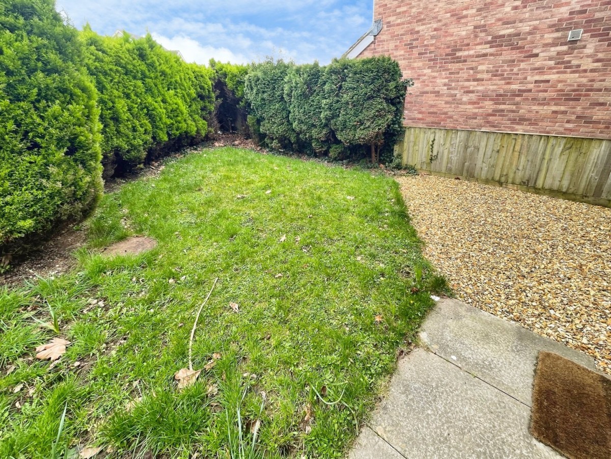 Paved path leading to the front door. Area laid to decorative stone. Area of laid lawn enclosed with hedgerow. Tarmacadam driveway with off road parking for two vehicles leading to garage. Large side space laid to lawn with hedgerow.