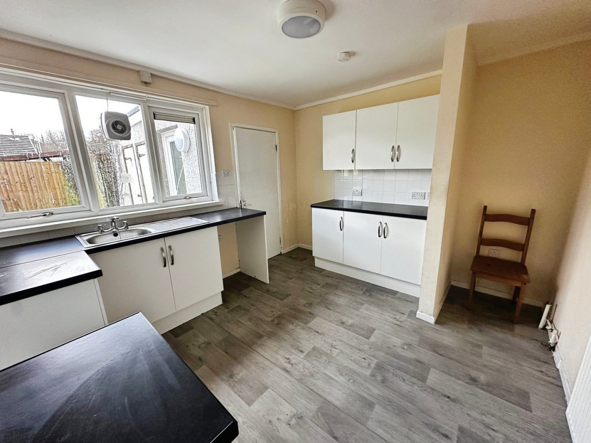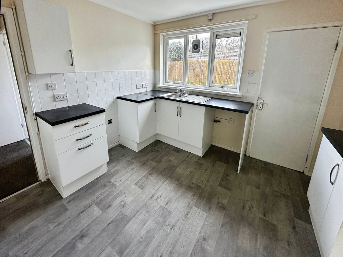 3.6m x 3.2m (11' 10" x 10' 6") Overlooking the rear via PVCu double glazed window with a built-in extractor. Central light fitting, vinyl floor. A range of low level of wall mounted kitchen units in white with brushed chrome handles and a complementary roll top work surface. Inset sink with mixer tap and drainer. Space for gas cooker. Plumbing for automatic washing machine. Space for fridge freezer. Doorway through into the rear lobby with a frosted glazed door leading out to the rear garden.