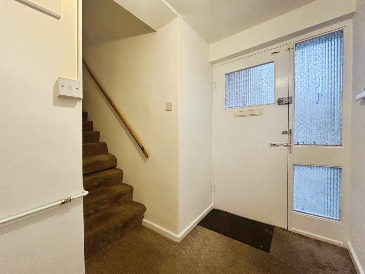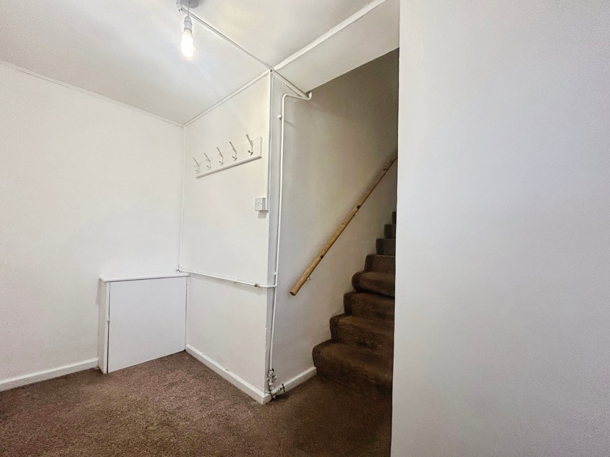 1.21m x 2.96m (4' 0" x 9' 9") Good sized porch finished with skimmed and emulsioned ceiling and walls, centre light, skirting, fitted carpet, PVCu obscured window overlooking the side of the property and cupboard housing the electric meter. Stairs leading to the first floor.