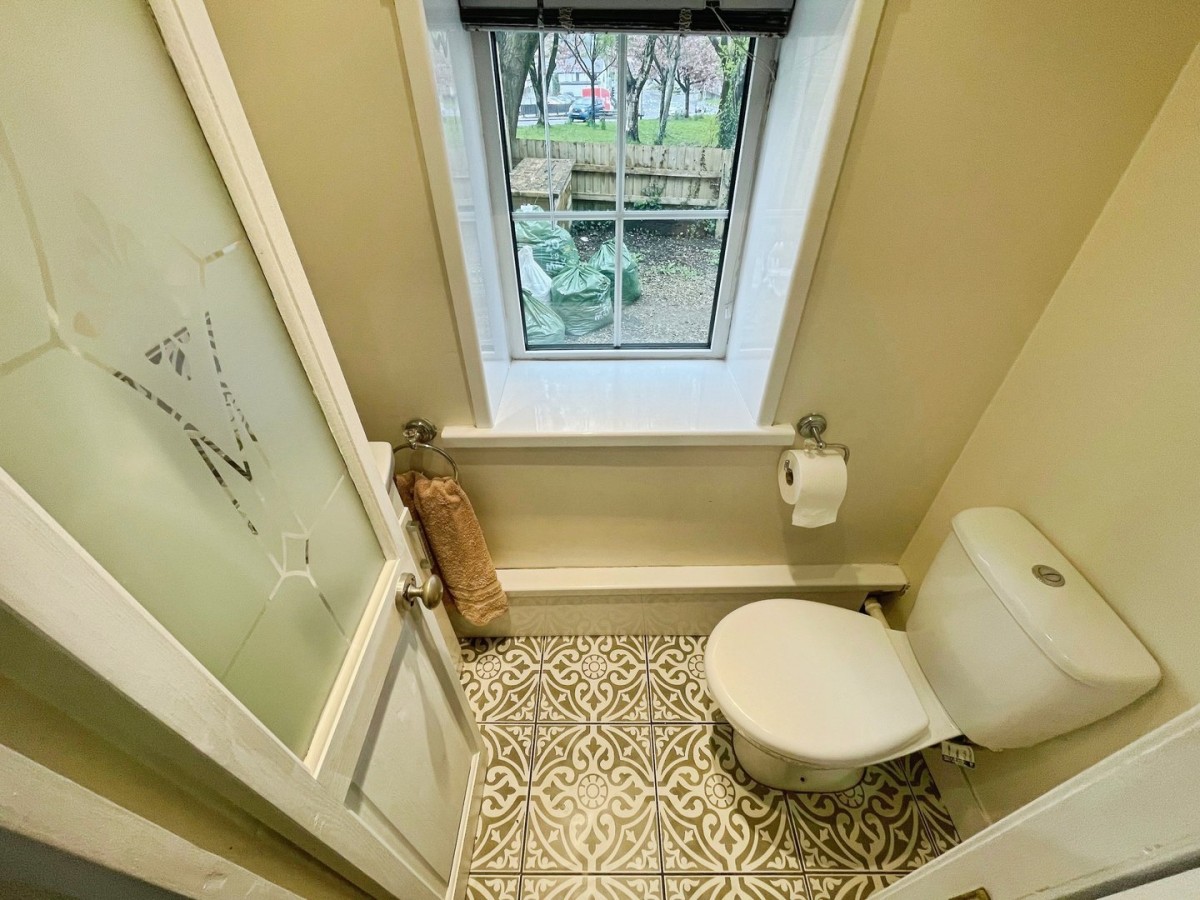 Emulsioned ceiling with sunken spot lights, emulsioned walls, PVCu double glazed window overlooking the side of the property, skirting and tiled flooring. Two piece suite comprising low level WC and vanity sink unit with chrome mixer tap and tiling to splash back area.