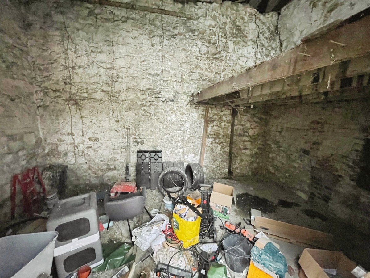 Emulsioned and coved ceiling, centre light, emulsioned walls, original exposed stone wall, feature open chimney breast, radiator, skirting and a continuation of the laminate flooring. Opening into potential play room space.