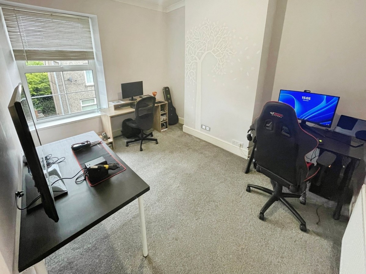 Emulsioned and coved ceiling, pendant light, emulsioned walls with one exposed painted stone wall, PVCu double glazed window overlooking the rear of the property, radiator, skirting and fitted carpet.