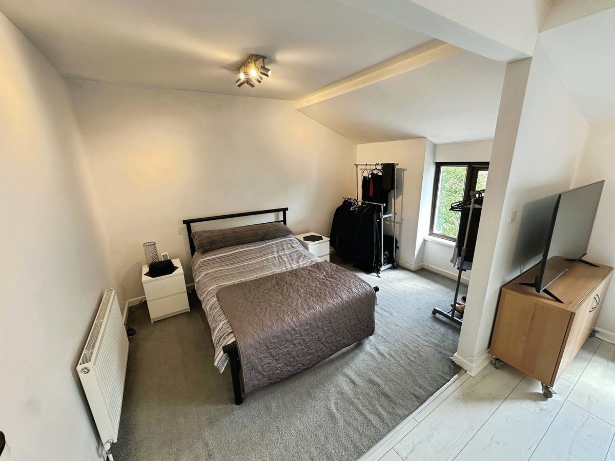 Overlooking the rear via PVCu double glazed window with a fitted roller blind and finished with emulsioned ceiling, central spot lights, emulsioned walls, skirting and fitted carpet.