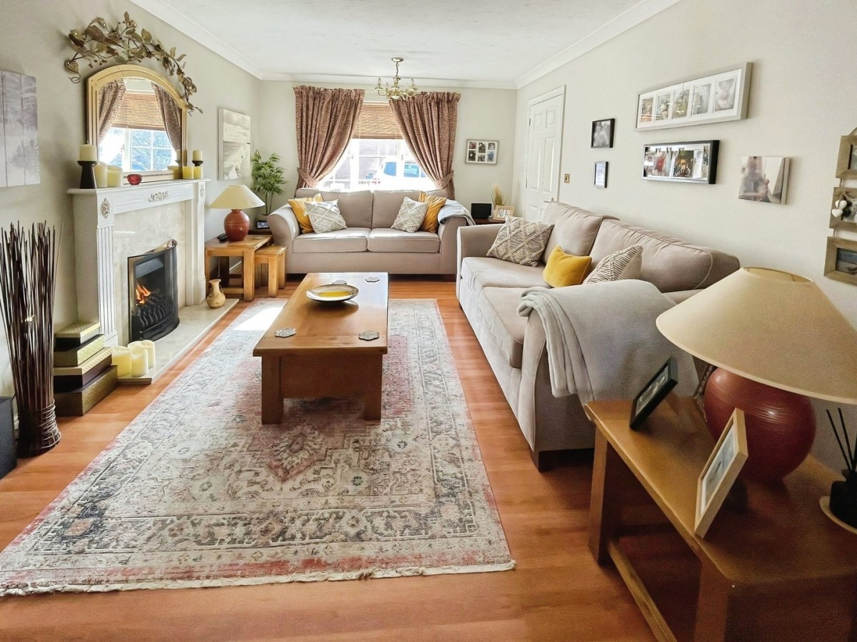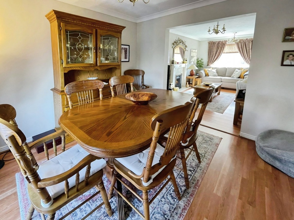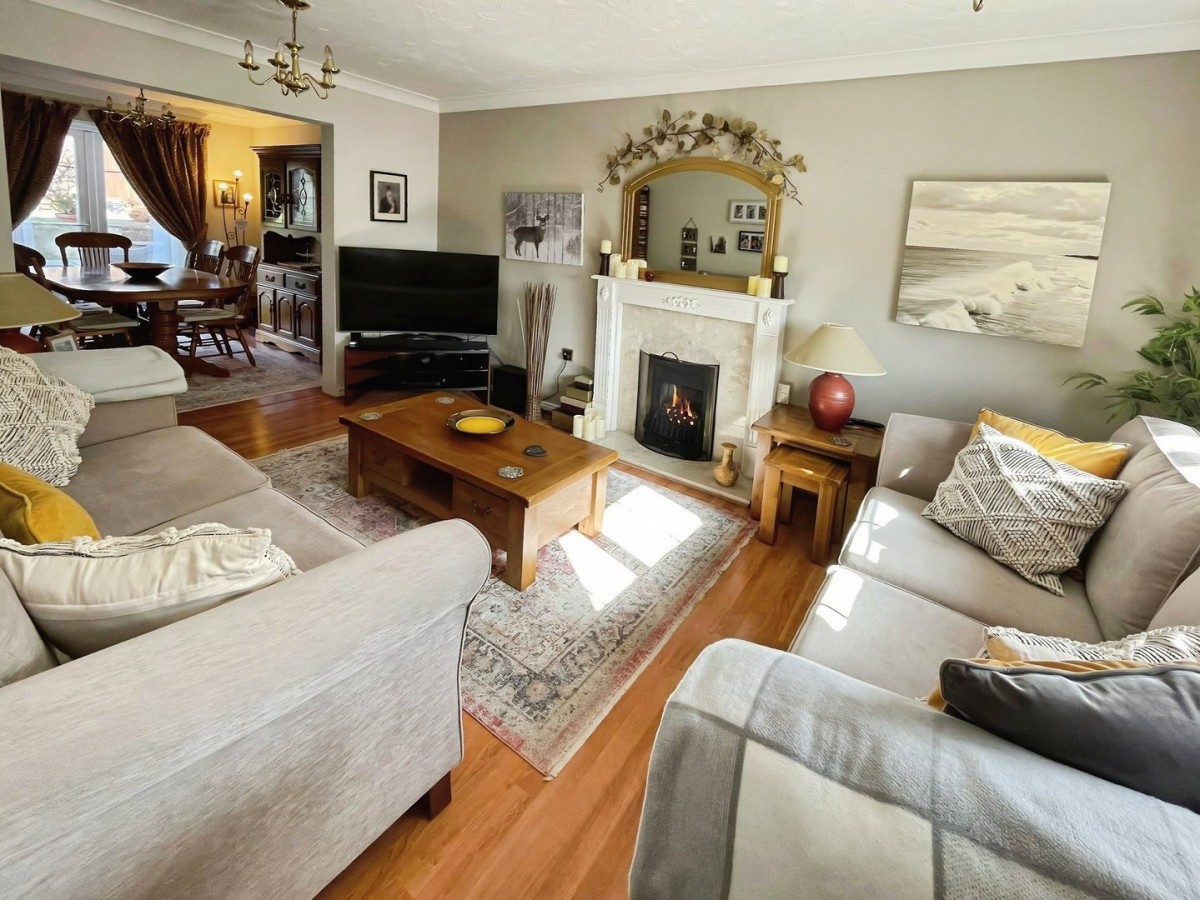 3.25m x 4.65m (10' 8" x 15' 3") Overlooking the front via PVCu double glazed window with a fitted Venetian blind. Laminate floor. Central fireplace with marble hearth. Square arch way through into dining