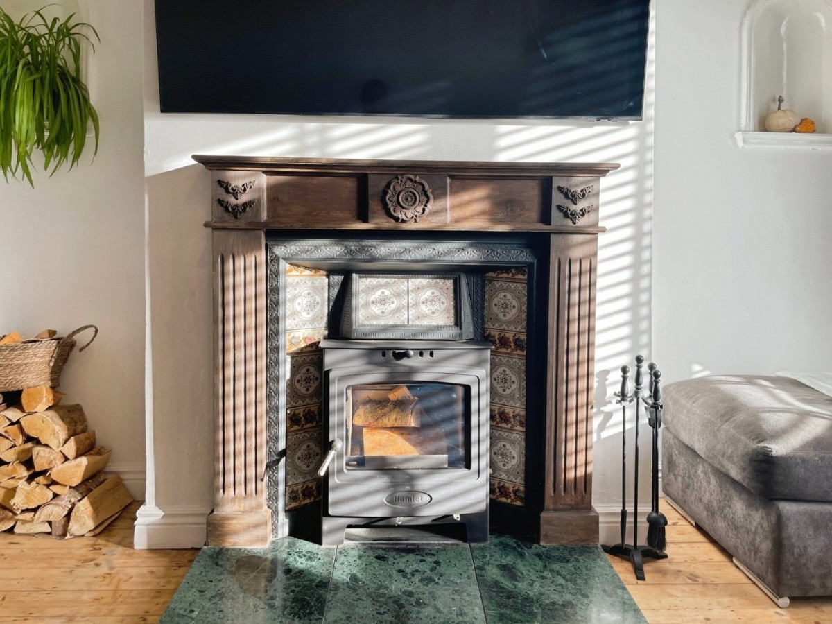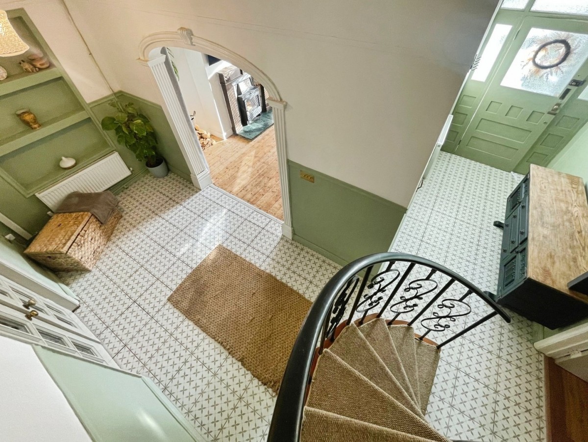 3.60m x 4m (11' 10" x 13' 1") Emulsioned and coved ceiling, picture rail, wood flooring and original arch opening into the hallway. Feature fireplace with wooden surround and Victorian style log burner with granite hearth. PVCu windows to the front of the property with fitted blinds, radiator and decorative arches to the alcoves.