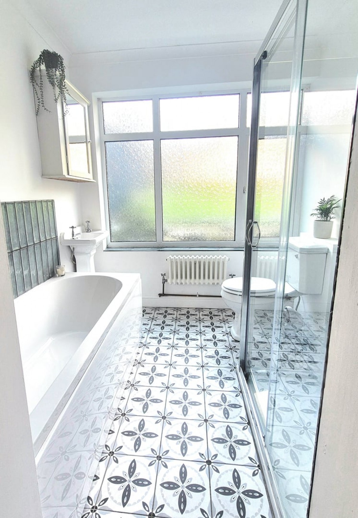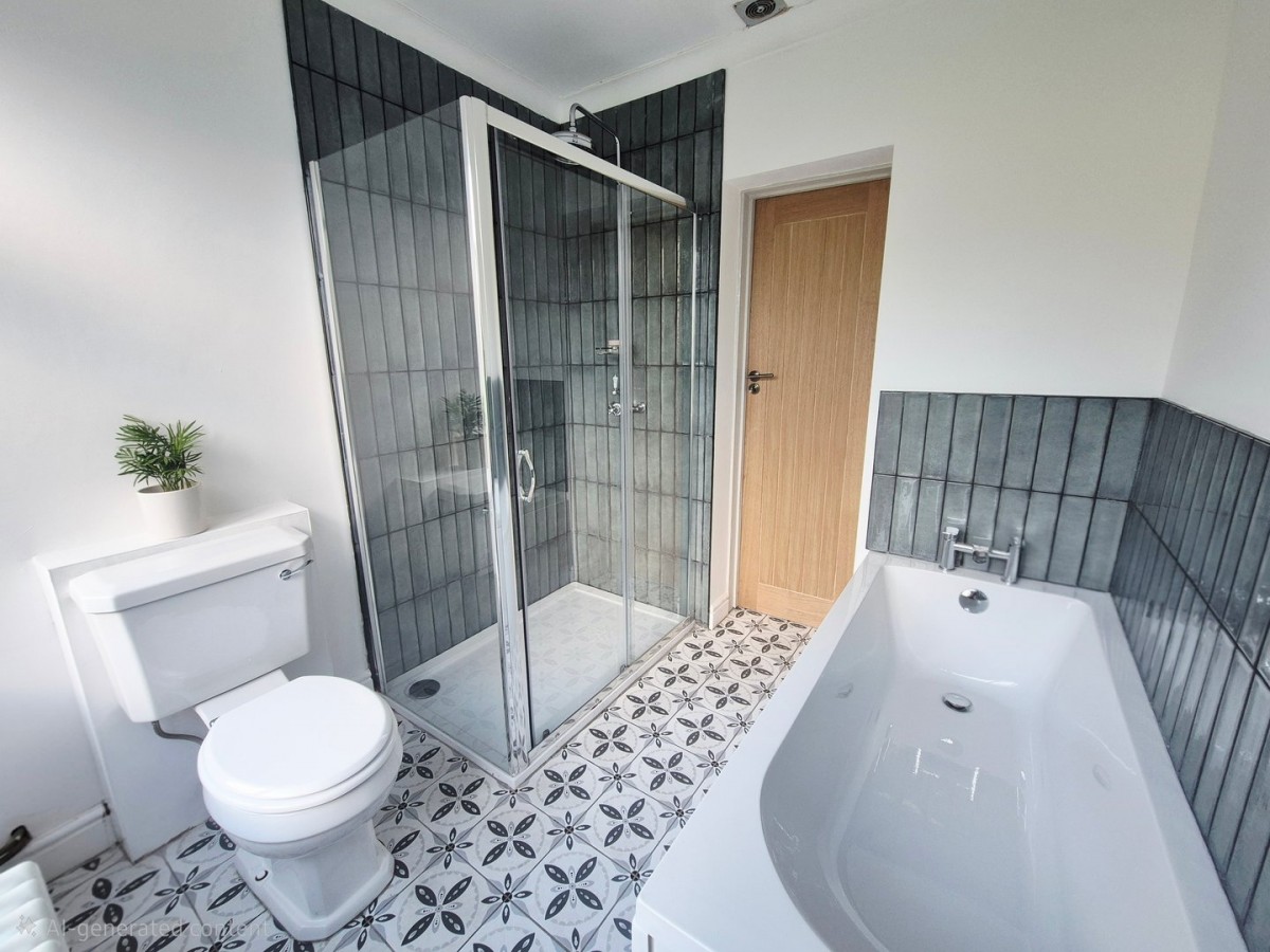 2.30m x 2.30m (7' 7" x 7' 7") Emulsioned and coved ceiling with extractor, emulsioned walls with tiling to the splash back areas, tiled flooring, Victorian style column white radiator and frosted PVCu window to the rear. Four piece suite comprising bath with stainless steel waterfall mixer tap and glass and stainless steel shower cubicle with sliding door and tiled splash back and stainless steel shower with waterfall head, low level w.c. and pedestal wash hand basin with stainless steel hot and cold taps.