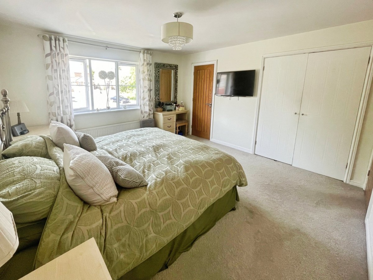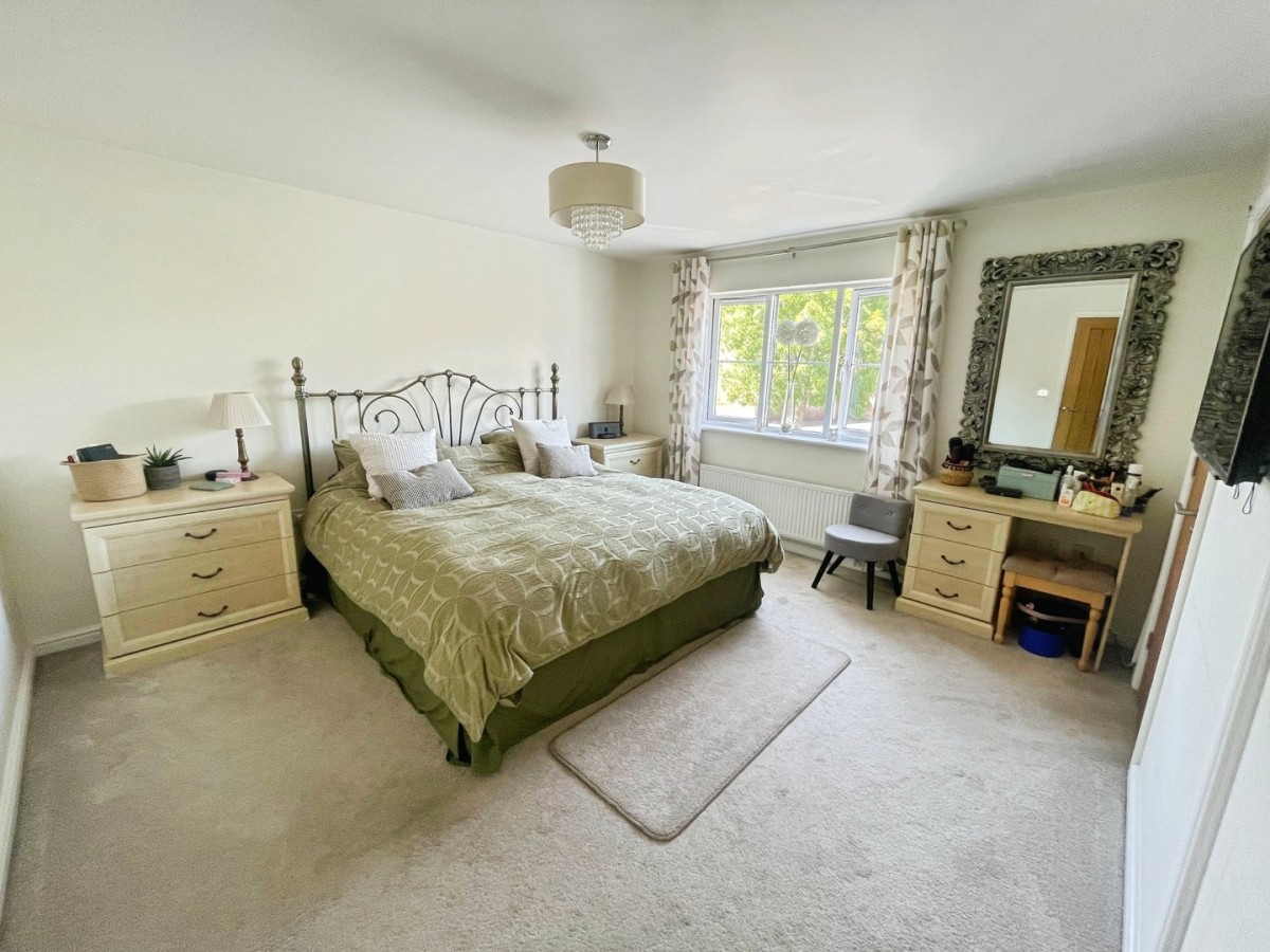3.70m x 4.00m (12' 2" x 13' 1") Emulsioned ceiling and walls, PVCu window overlooking the front elevation, radiator and fitted carpet. Built in wardrobes. Solid oak door leading to ensuite.