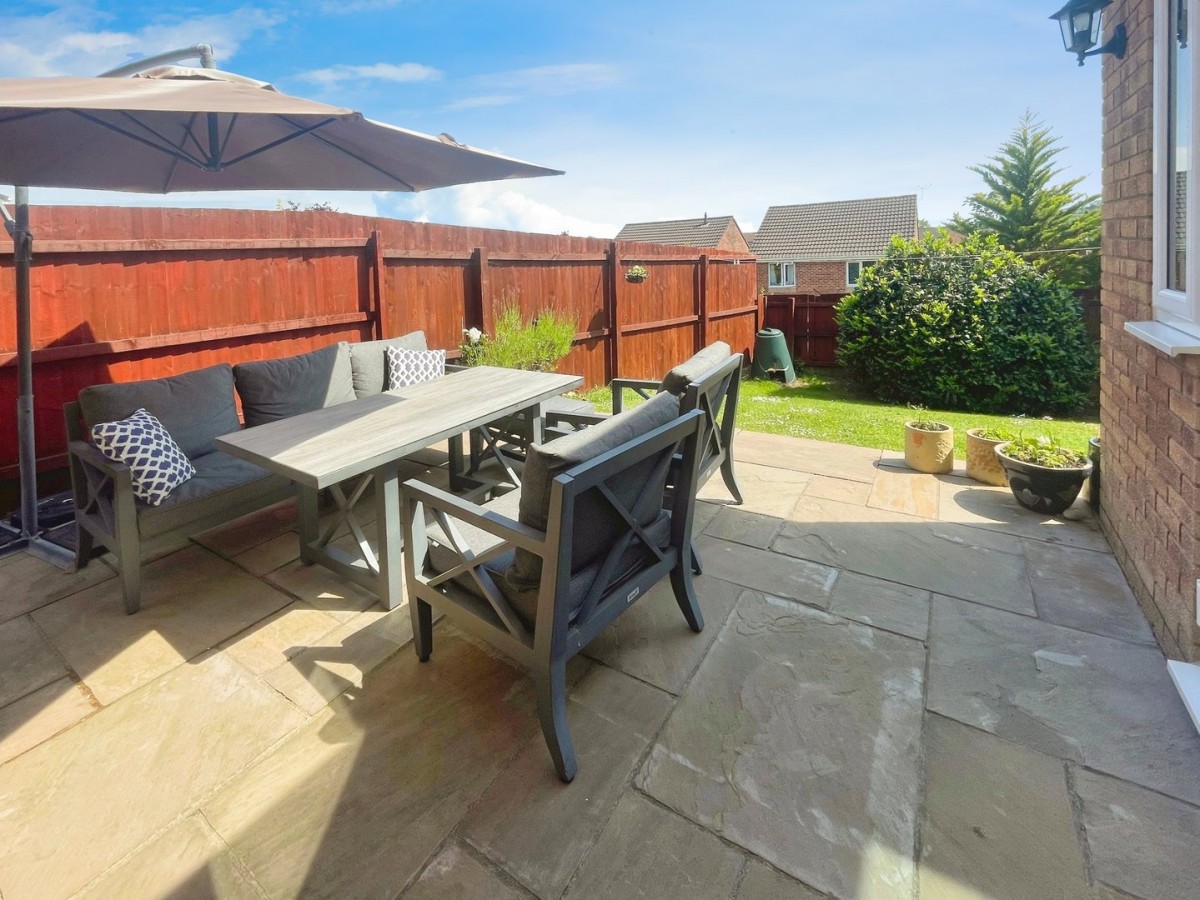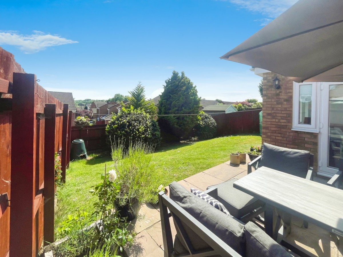 Enclosed rear garden with patio area ideal for garden furniture and the remainder laid to lawn with mature trees and shrubs. Courtesy door to the side of the garage.