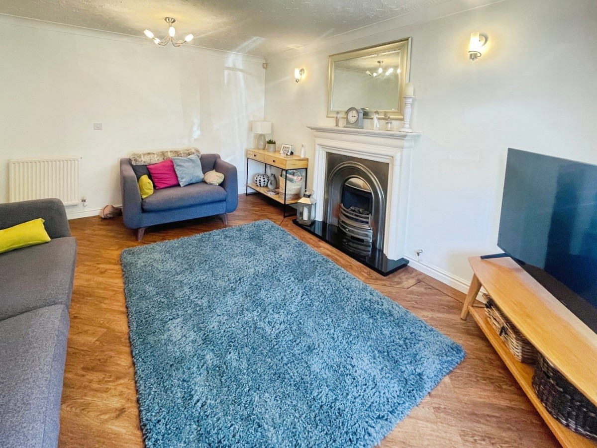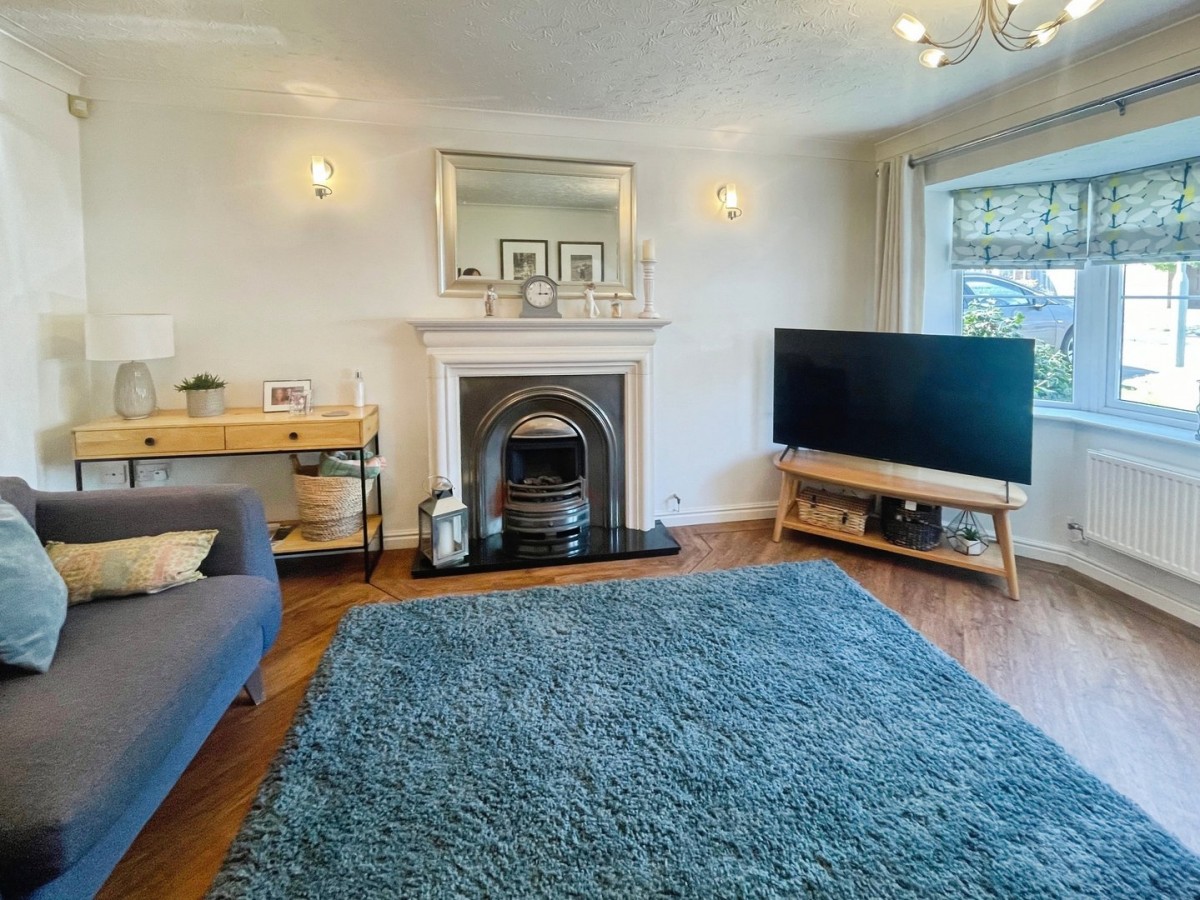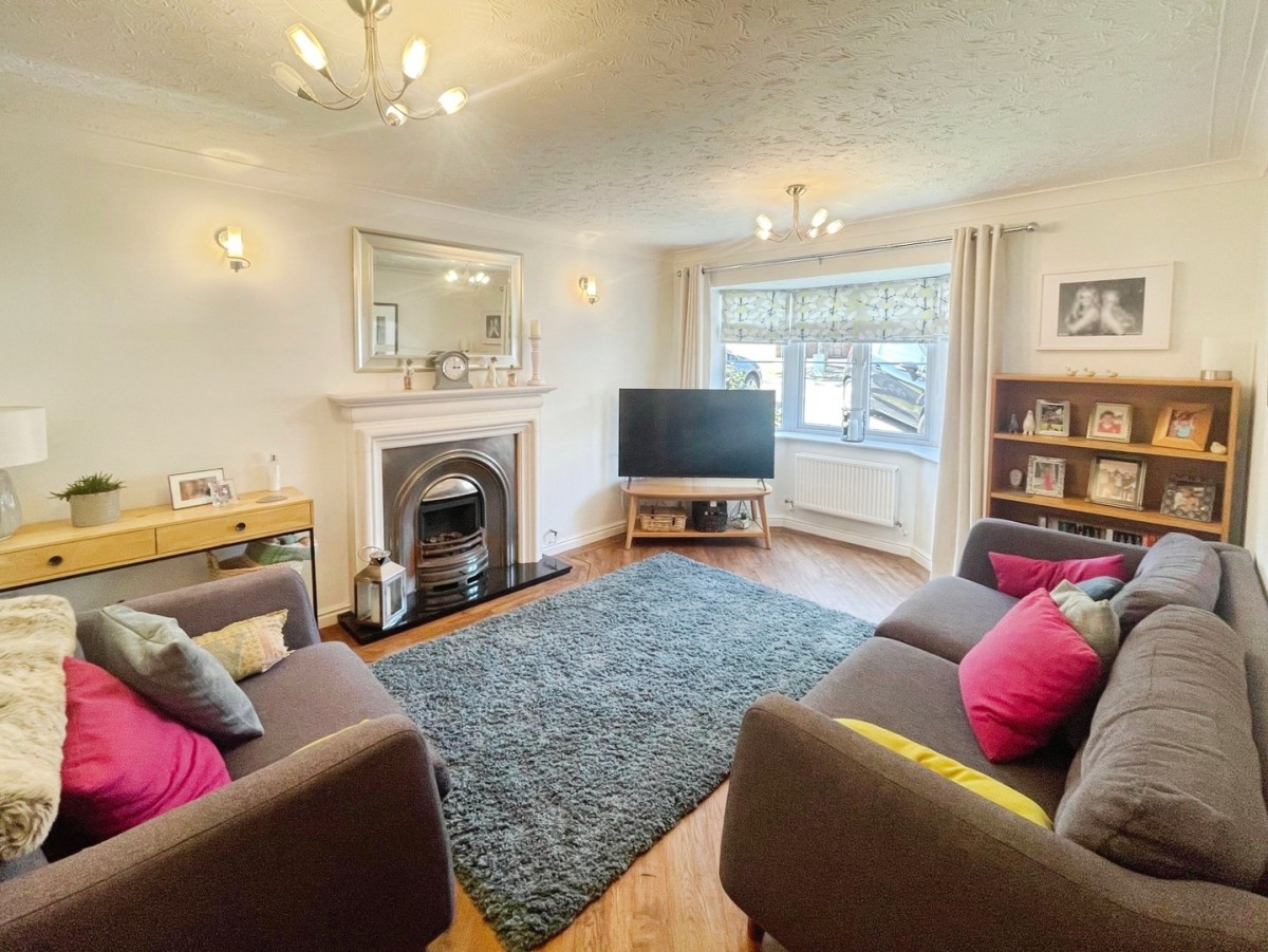 4.80m x 3.50m (15' 9" x 11' 6") Measurements into the bay. Artexed and coved ceiling, emulsioned walls, PVCu bay fronted window overlooking the front, radiator, focal fireplace with stone surround, gas fire and marble hearth, and Karndean flooring.