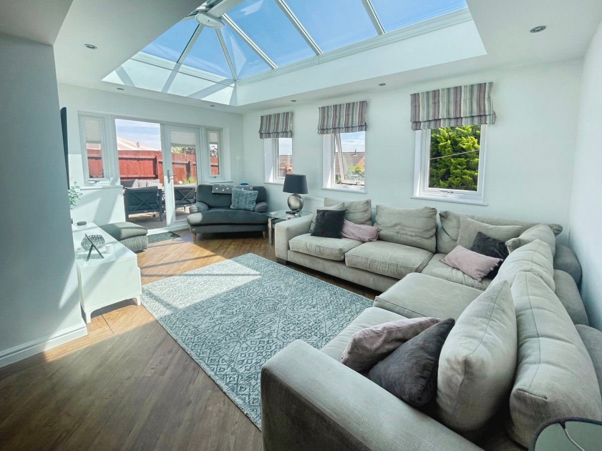 5.40m x 3.20m (17' 9" x 10' 6") Emulsioned ceiling and walls, lantern skylight, spot lights, PVCu windows overlooking the side and rear of the property, PVCu French doors leading out to rear garden, radiator and Karndean flooring.
