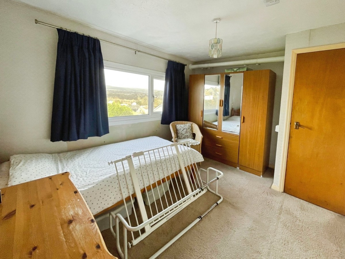 2.70m x 3.50m (8' 10" x 11' 6") Textured ceiling, papered walls, fitted carpet, radiator and PVCu window overlooking the rear of the property with attractive rooftop mountain views. Door leading into a cupboard housing the Ideal combination boiler.