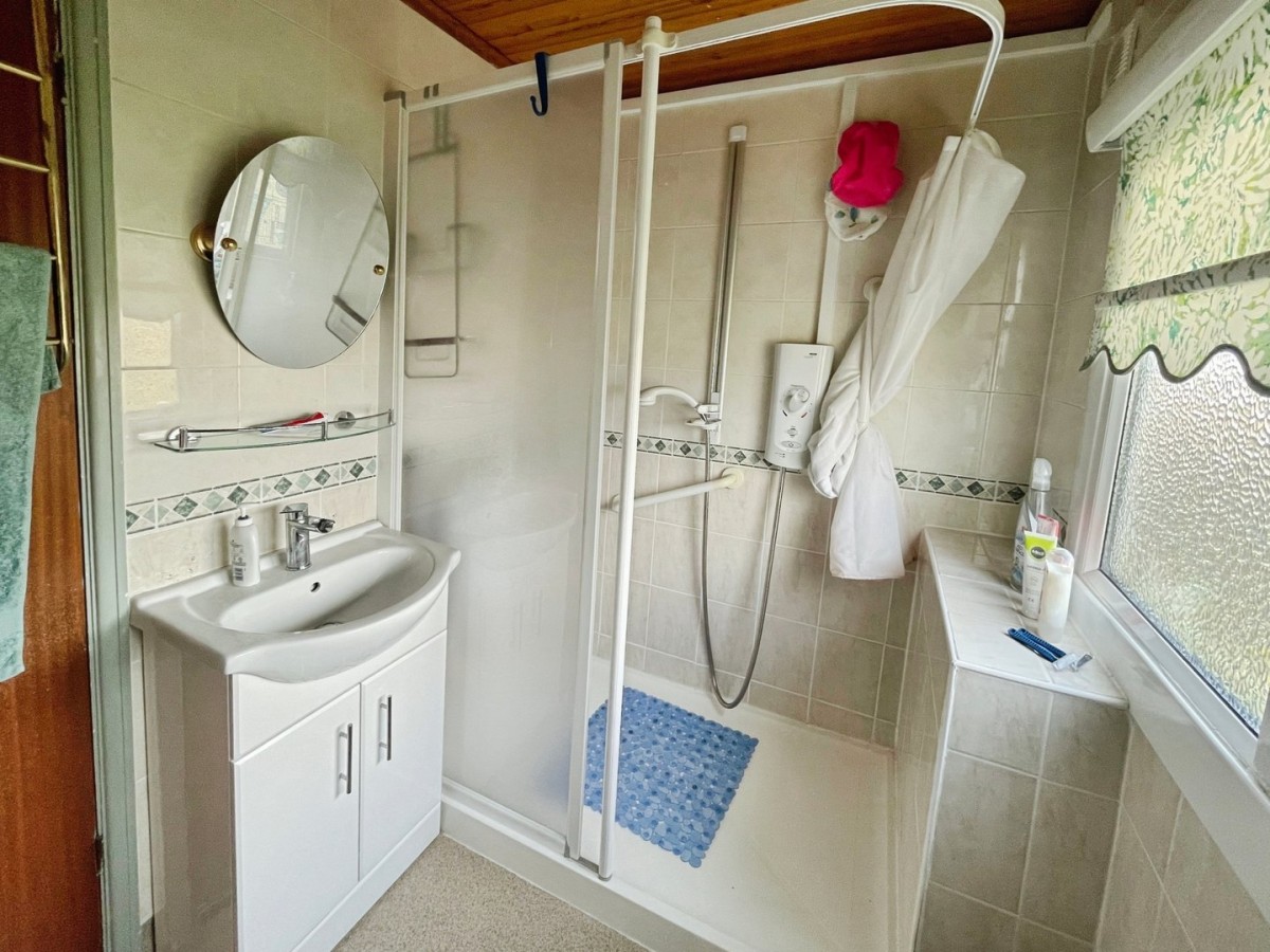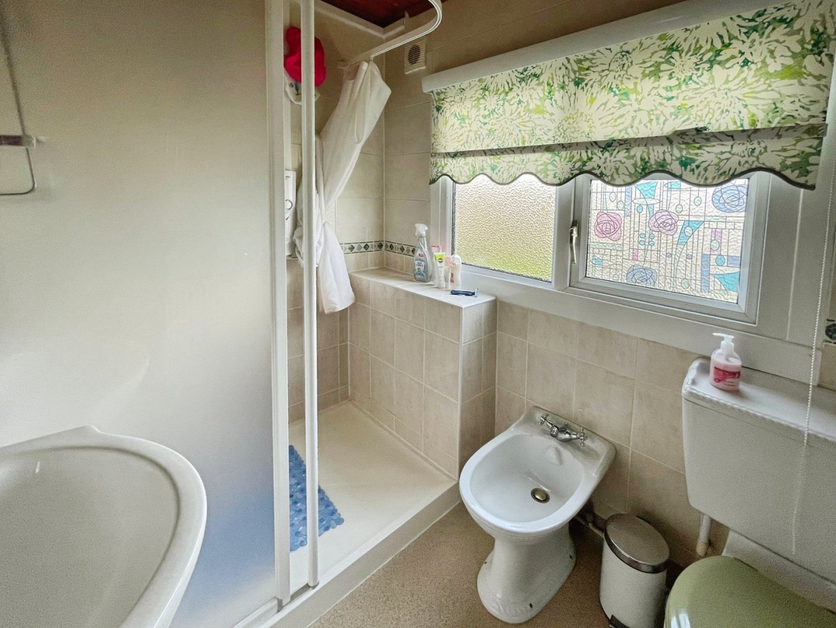 2.10m x 1.60m (6' 11" x 5' 3") Wood clad ceiling, fully tiled walls, vinyl flooring, frosted PVCu window overlooking the rear of the property, extractor and radiator. Four piece suite comprising walk in shower cubicle with electric shower and opaque screen, vanity unit housing the wash hand basin with stainless steel waterfall mixer tap, glass shelf and wall mounted mirror above, low level w.c. and bidet.