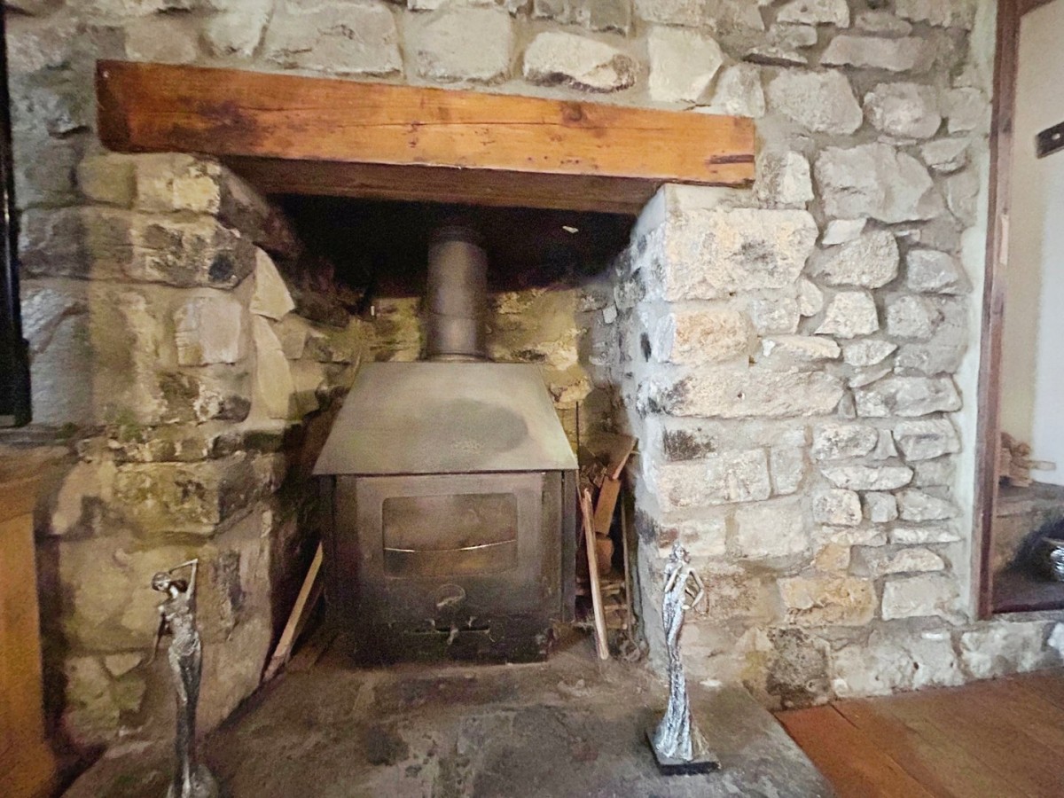 3.58m x 3.55m (11' 9" x 11' 8") Textured ceiling with wooden beams, original stone wall with log burning fire with a fabulous original stone staircase and a continuation of the wood flooring. Under stairs storage cupboard.