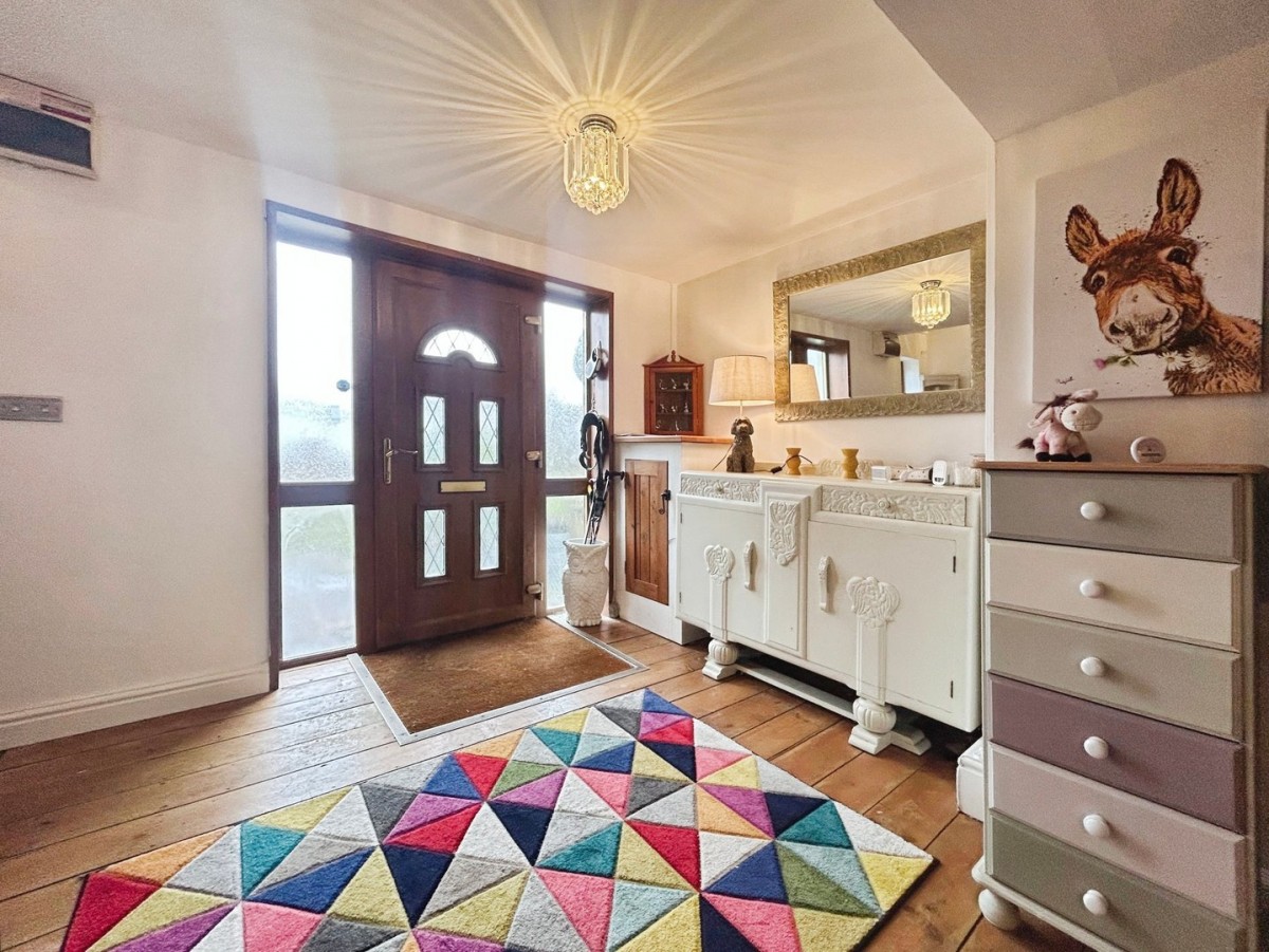 The front of the property is bound by stone and block wall. Wooden gate with path leading to the front door and bordered with mature shrubs. Potential to create off road parking.