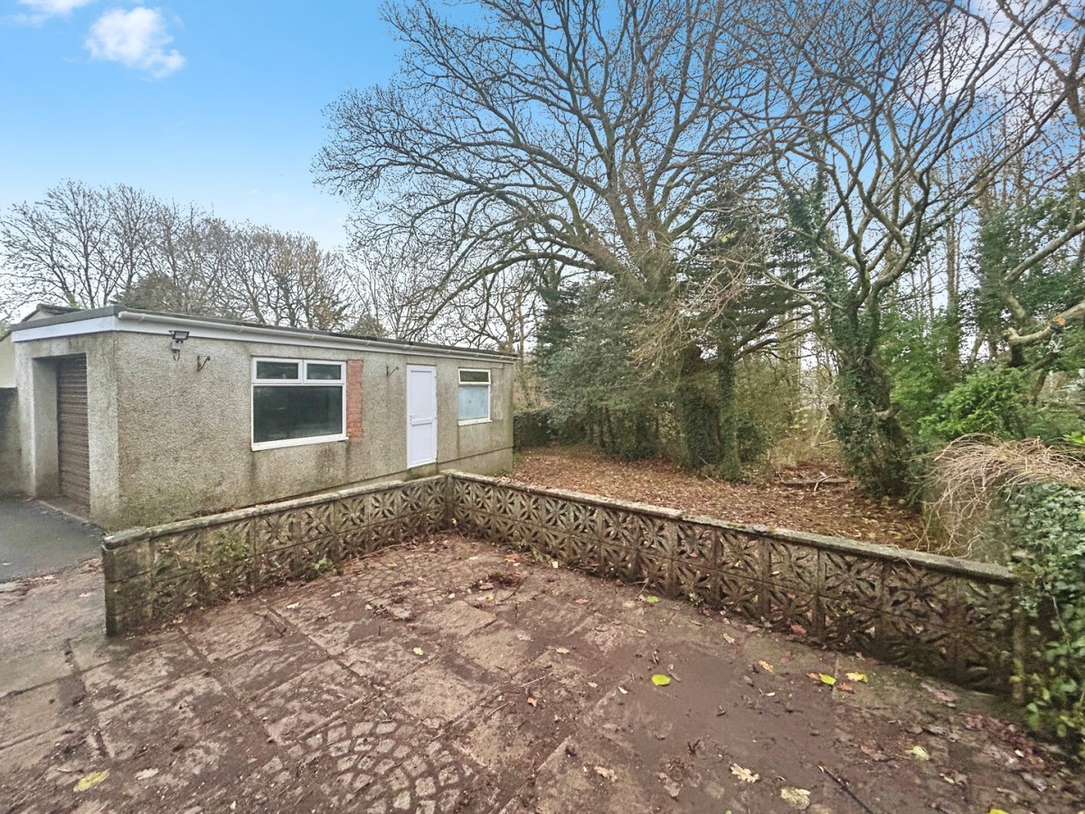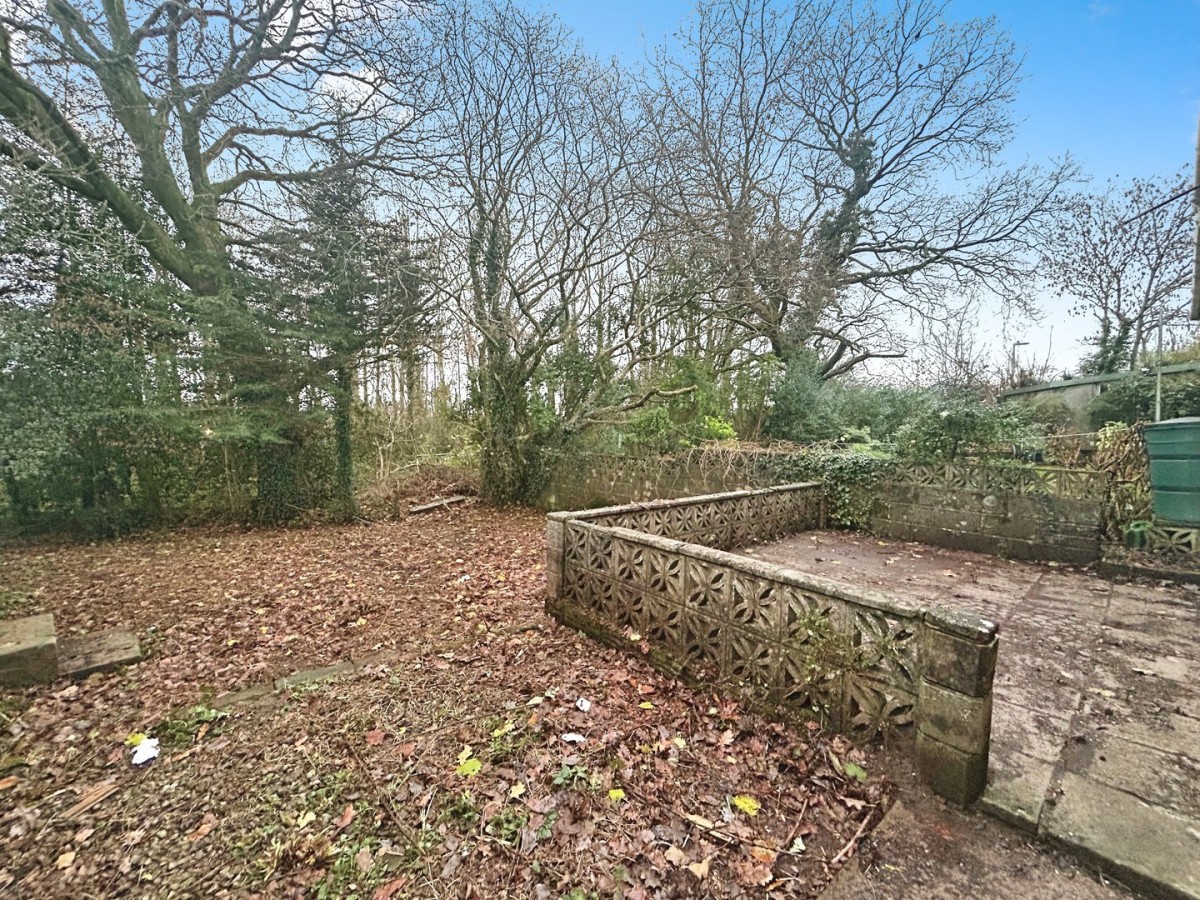 The private rear garden is bound by dwarf wall and trees, small patio area and barked areas. Large garage.