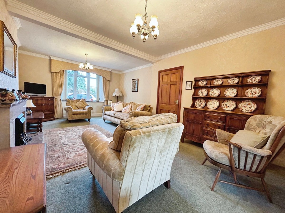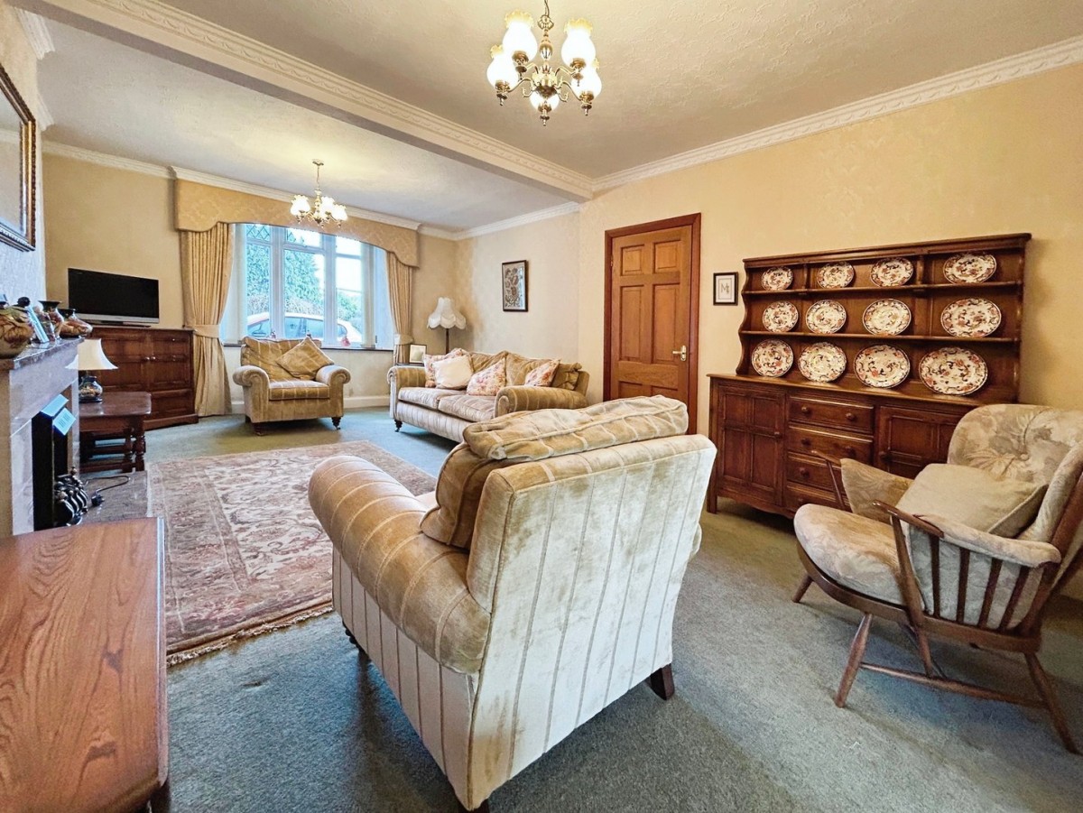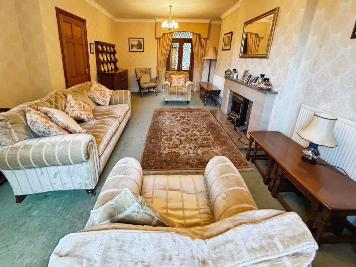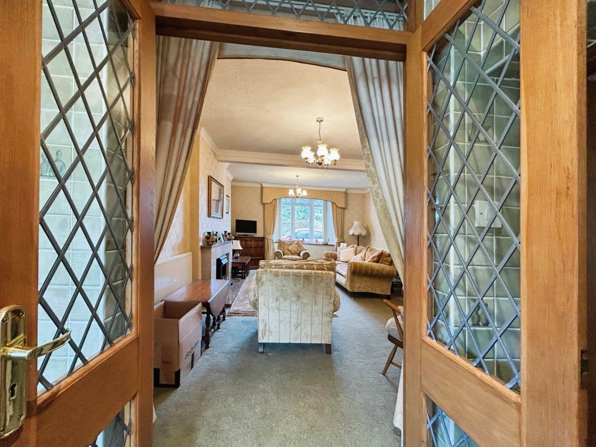 3.74m x 6.5m (12' 3" x 21' 4") Emulsioned, papered and coved ceiling with two sets of pendant lights, papered walls, three radiators, skirting, fitted carpet and PVCu bay window to the front of the property. Fire surround with marble hearth with decorative gas fire to remain. Double doors leading to the kitchen.