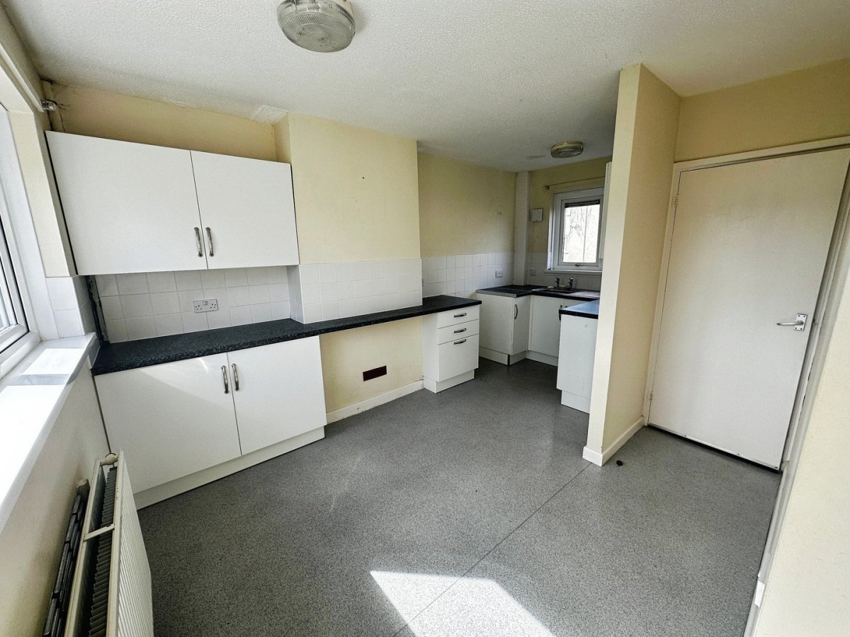 4.55m x 4m (14' 11" x 13' 1") L-Shaped kitchen. With dual aspect natural light via PVCu double glazed windows to the front and the rear and a frosted glazed door leading out to the rear garden.