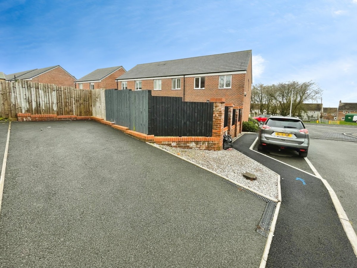 The front of the property is laid to bark chippings and mature shrubs with steps leading to the front door with external lighting. Off road parking to the rear of the property.