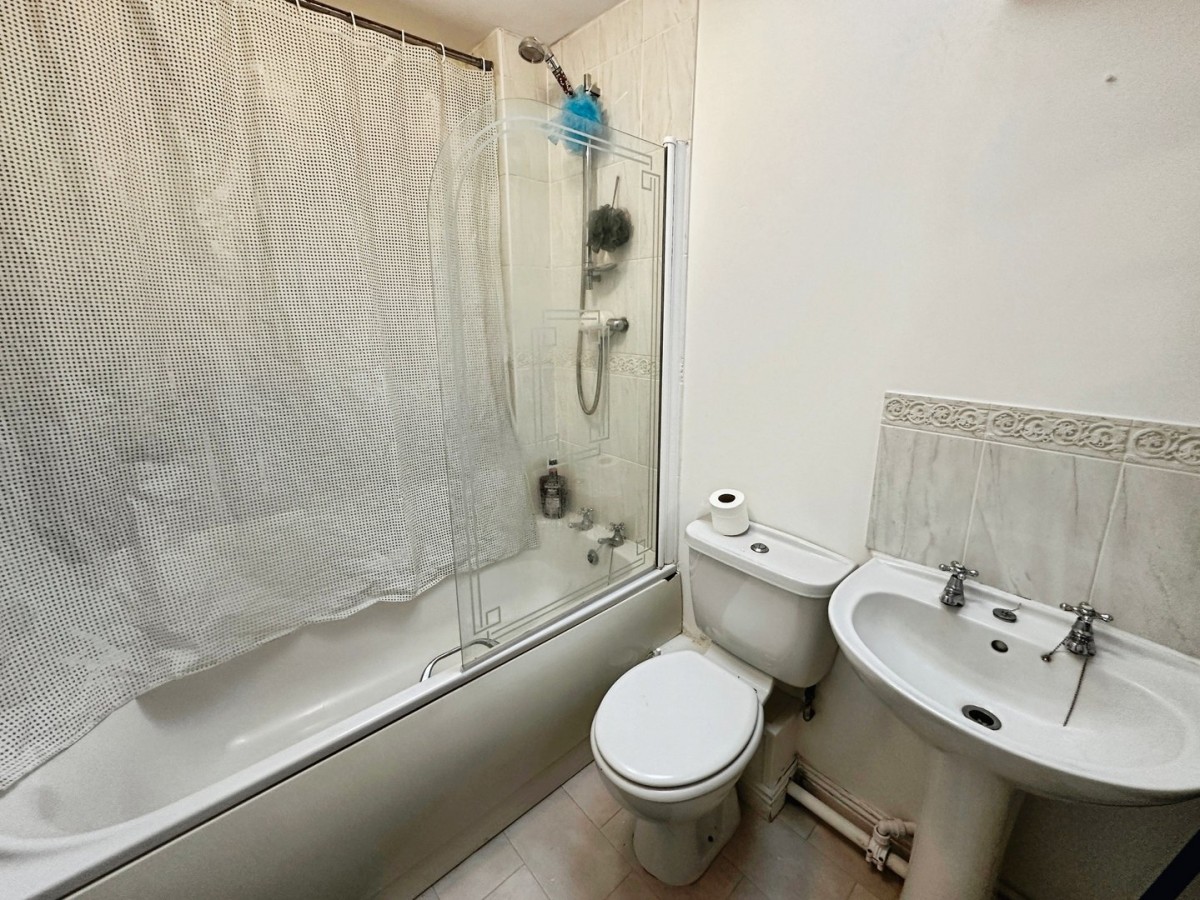 Double glazed Velux skylight. Three-piece suite in white with WC, wash hand basin and bath with over bath plumbed shower.
