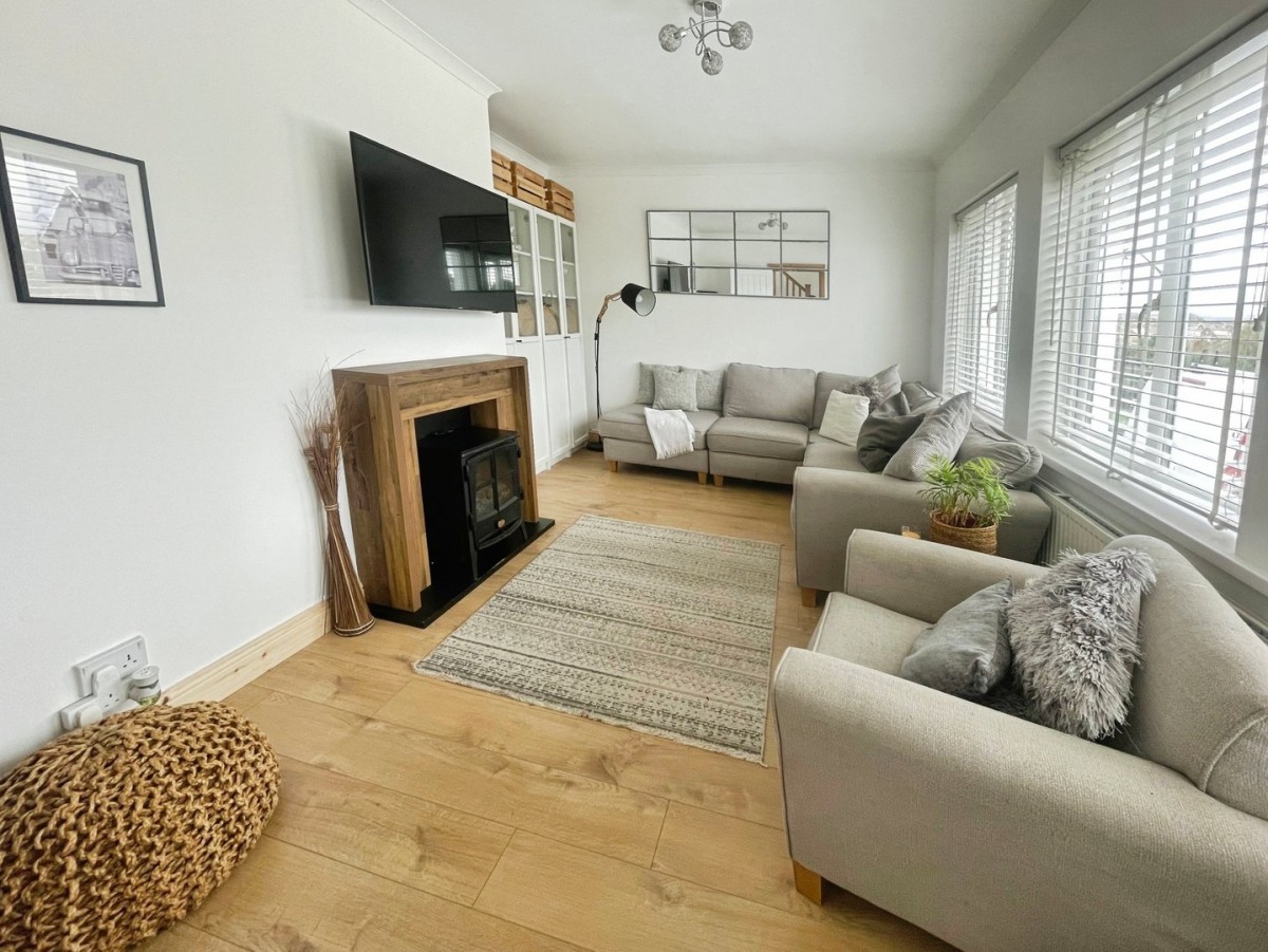 2.70m x 4.90m (8' 10" x 16' 1") Emulsioned and coved ceiling and walls, three PVCu windows to the front of the property with venetian blinds, laminate flooring and radiator. Feature walnut fire surround.