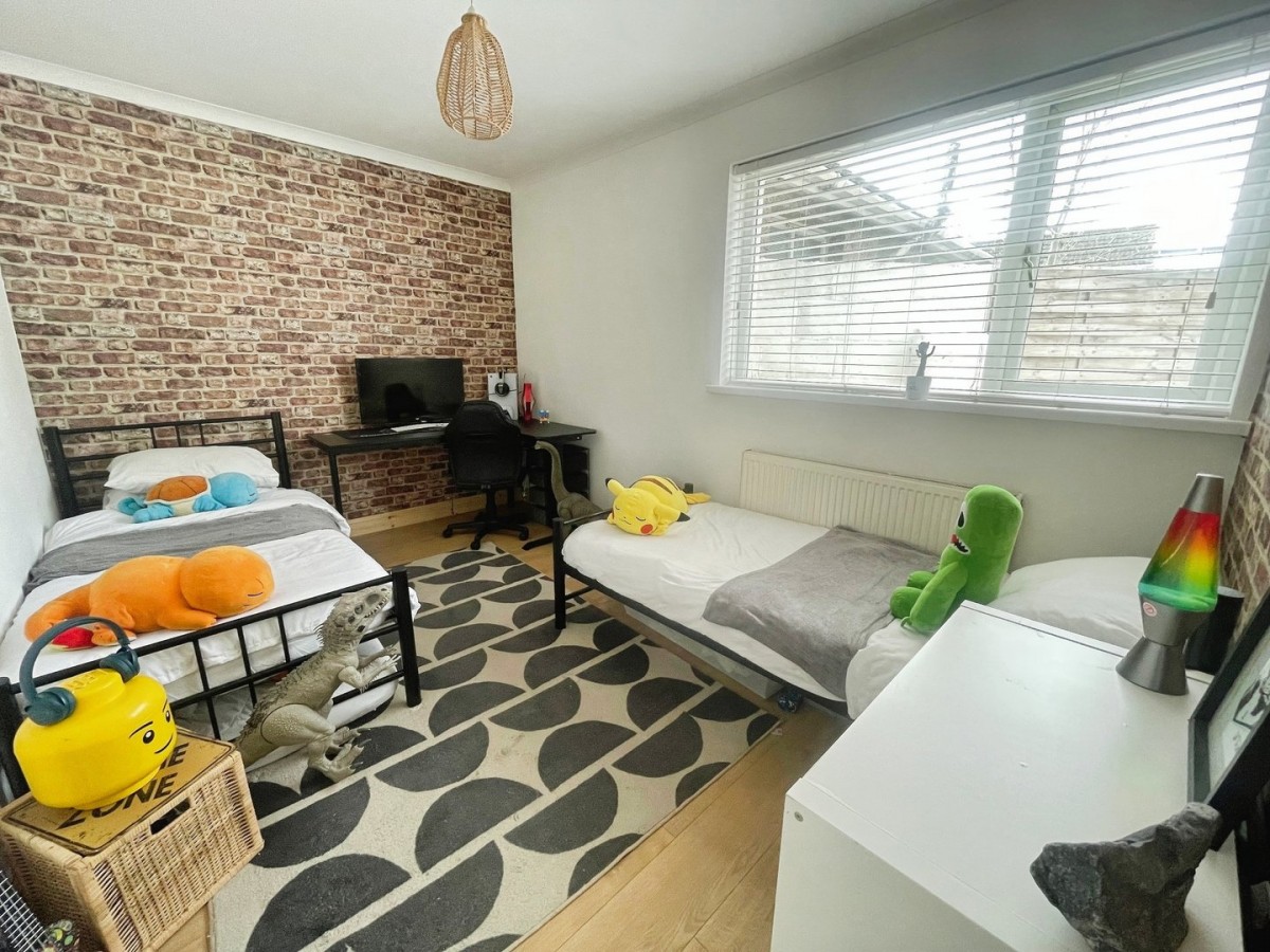 2.70m x 4m (8' 10" x 13' 1") Emulsioned and coved ceiling, emulsioned walls with brick effect feature papered wall, laminate flooring, PVCu window overlooking the rear with a venetian blind and radiator.