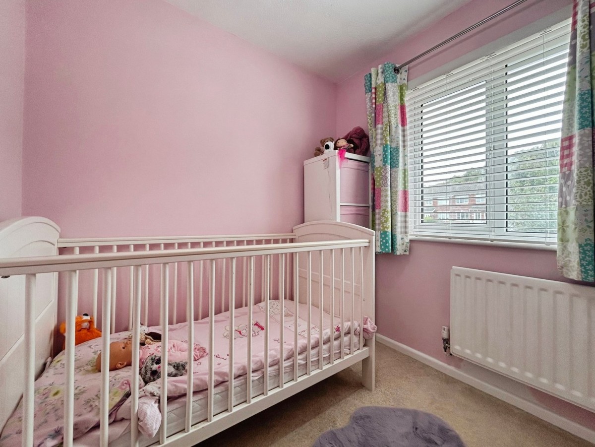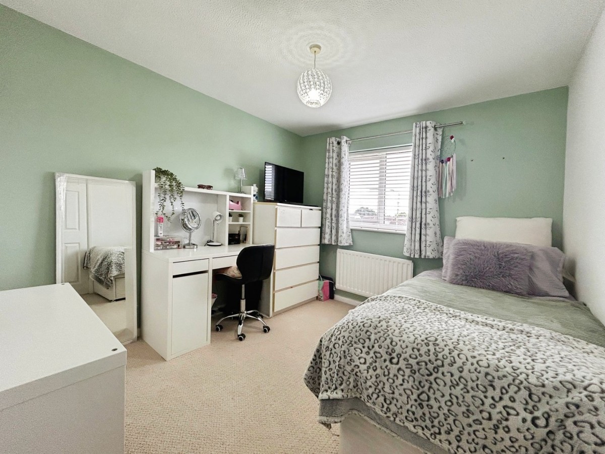 Textured ceiling, emulsioned walls, radiator, PVCu window overlooking the rear of the property, skirting and fitted carpet. Built in storage with hanging rail.