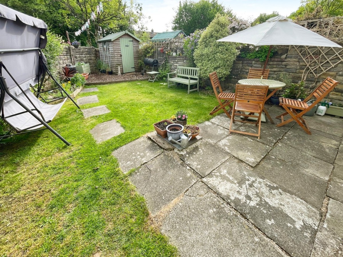 Enclosed private rear garden mainly laid to lawn, area of patio, area of bark with space for freestanding shed. Side gated access to the front of the property.