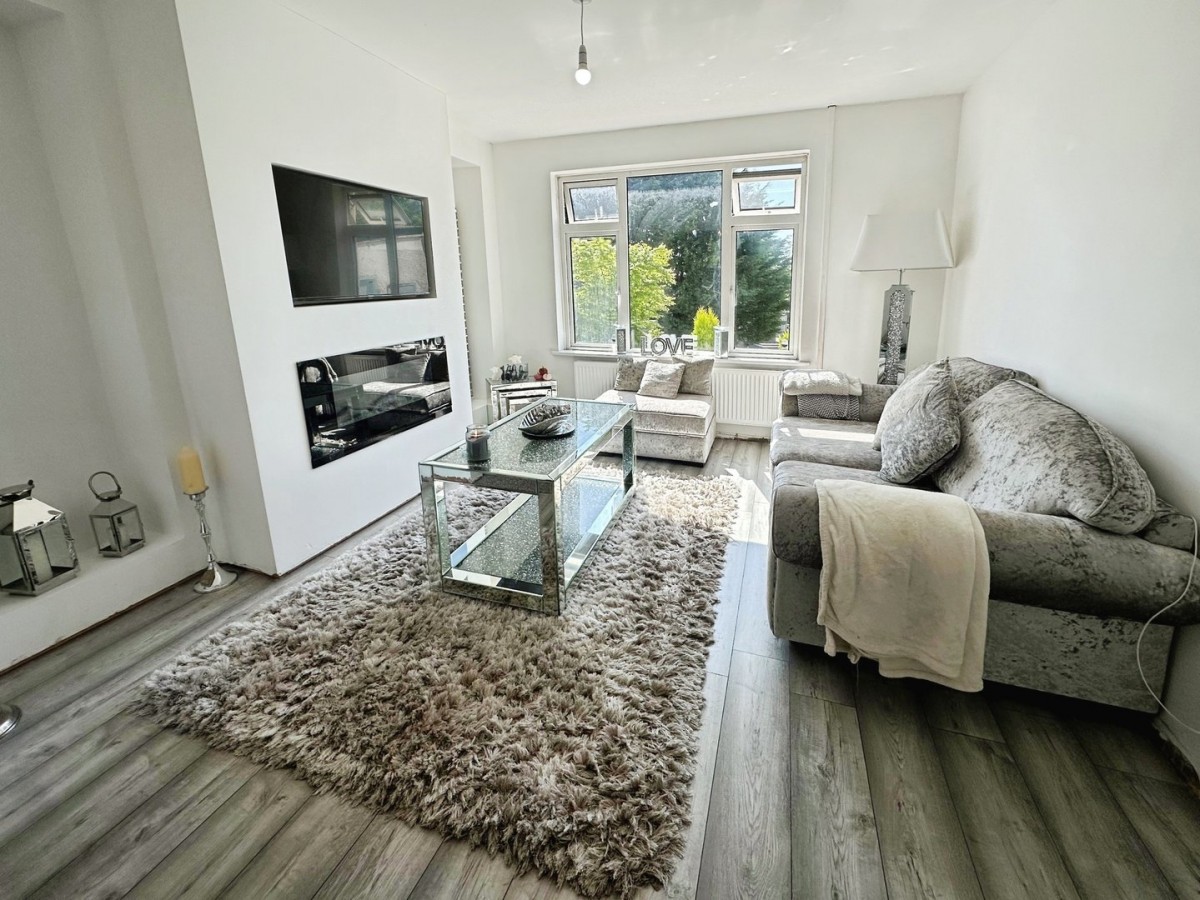 Overlooking the rear garden via PVCu double glazed window and finished with emulsioned ceiling and walls, wall mounted electric feature recessed fire, recess for television, feature lighting within the chimney breast alcoves, skirting and laminate flooring. Large arch way through to reception 2.