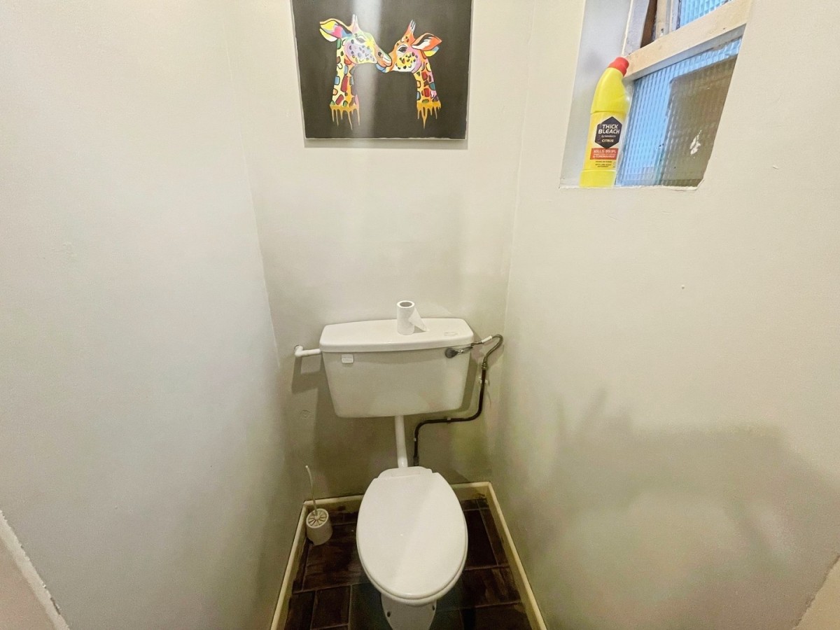 Vinyl tile effect flooring. Plumbing for automatic washing machine and windows to the rear and side of the property. Pedestal wash hand basin. Door leading into the WC. Door leading into the lean to.